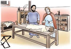 There is a hospital building (valeˉtuˉdinaˉrium) for treating the sick and wounded. The most common illnesses are stomach problems and eye issues. This building isn’t equipped to deal with long-term recovery, though; anyone seriously injured is usually discharged from the army. The medics are well respected and have a lot of opportunity to study the human body; I think they are often actually better than civilian doctors.