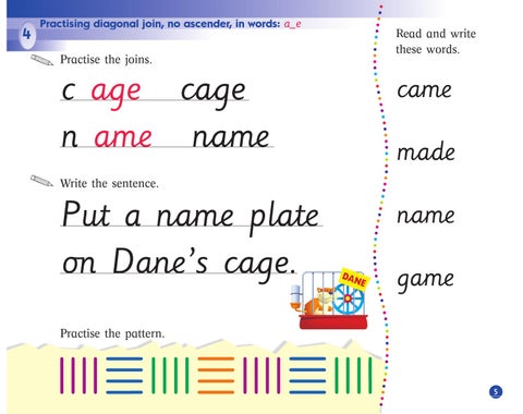 Practising diagonal join, no ascender, in words: a_e Practise the joins.