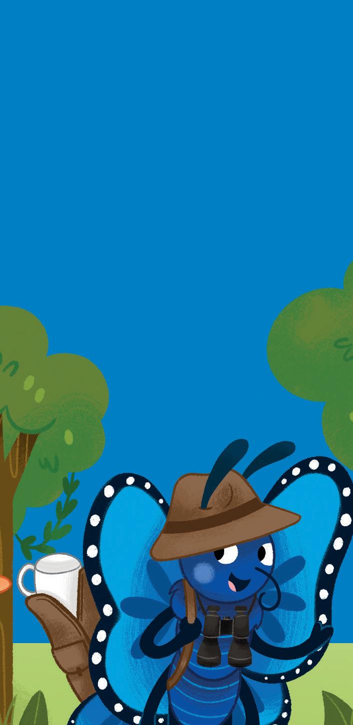 • Show children the character name cards from Activity sheet 1.9.1: Character name cards. Tell them they are going to make a new name card for themselves, too. Talk about how the letters are decorated on the character name cards and discuss why. For example, ask What does (Mia) have or like? What can (she) use to help (her) know it is (her) name? Explain Mia’s letters are blue and have flowers and wings because she is a blue butterfly. Some children may remember the alliterations from Week 2 (for example, ‘big butterfly’) but there is no expectation of this.