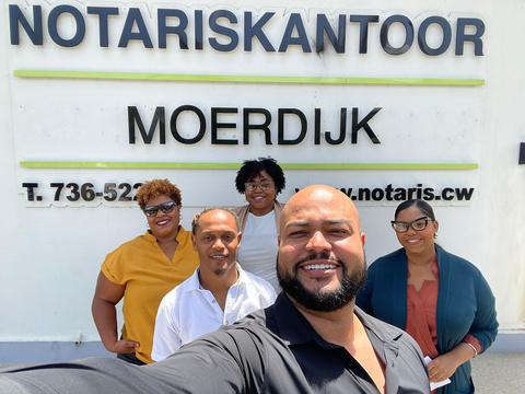 Riba potret di d.r.p.d. Notario Moerdijk i fundadonan di asosashon sra. Kimberly Ascencion, sra. Judeska Carlo, sr. Christopher de Wind, sra. Aduke Torres i sr. Turley Betorina