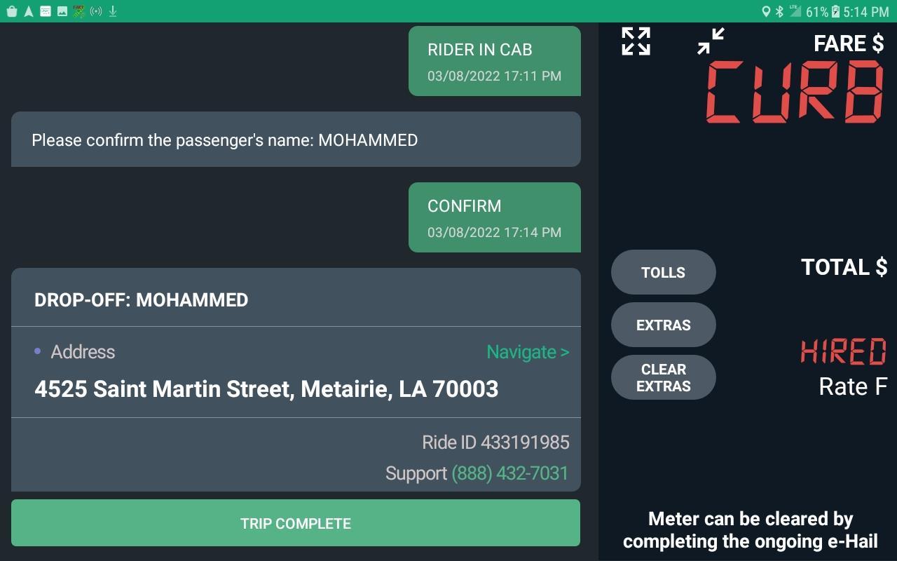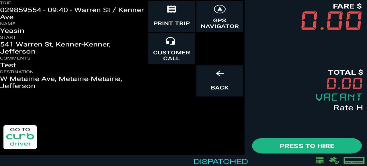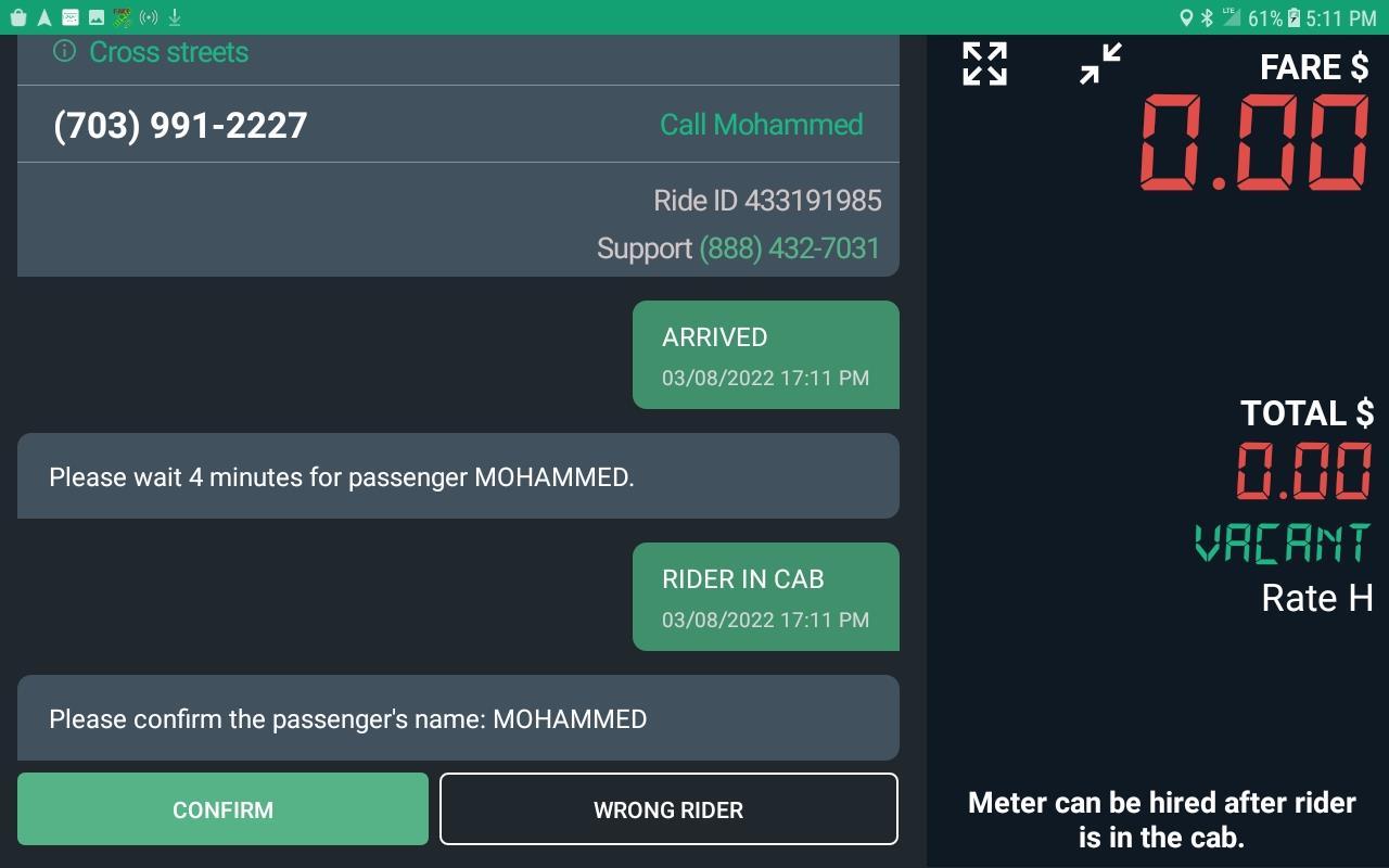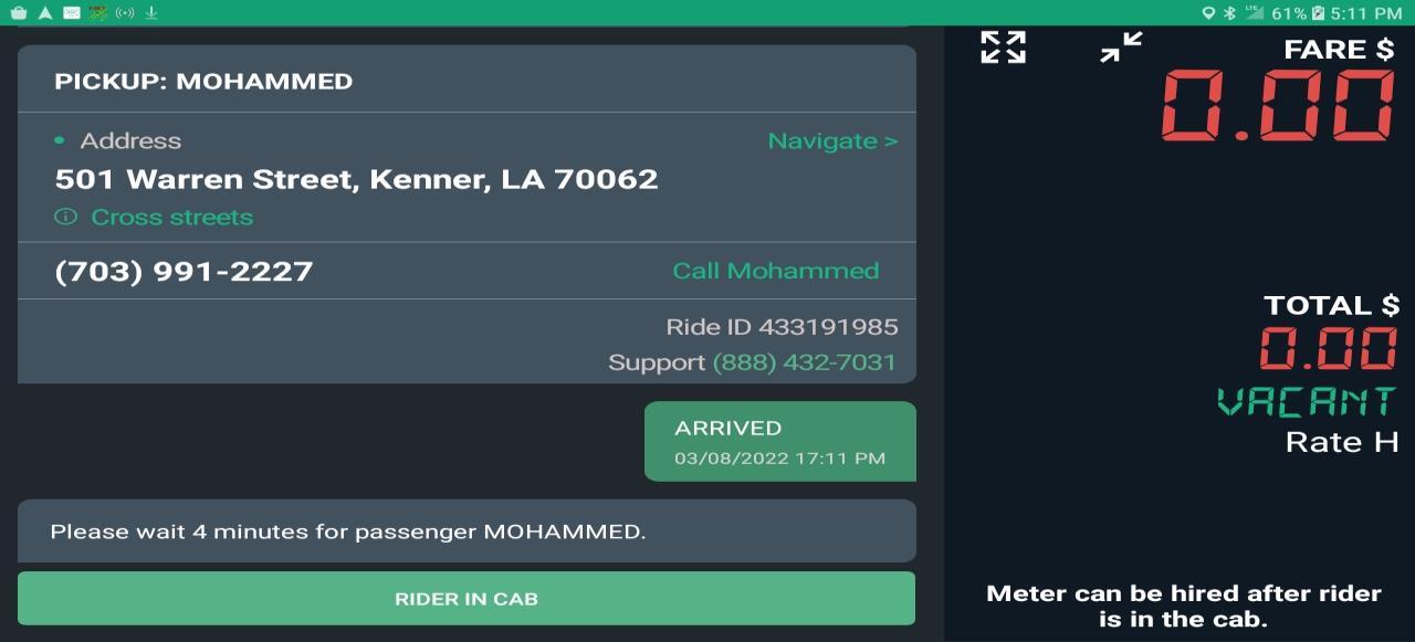 Select “Rider in Cab” button when passenger is in vehicle.