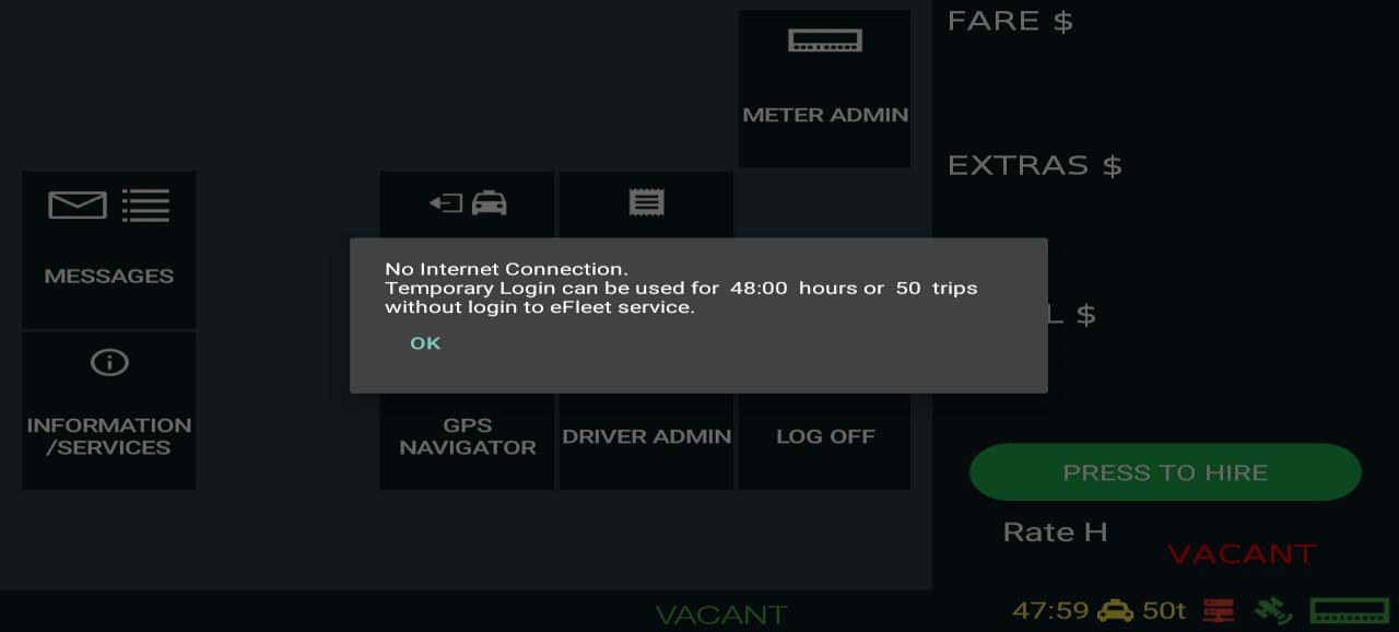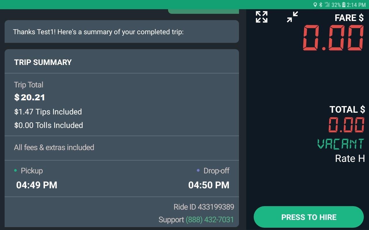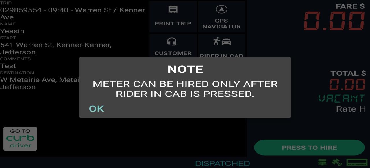 Keep in mind that the meter can only be hired once you are at pick up location and selected “Rider in cab” button.