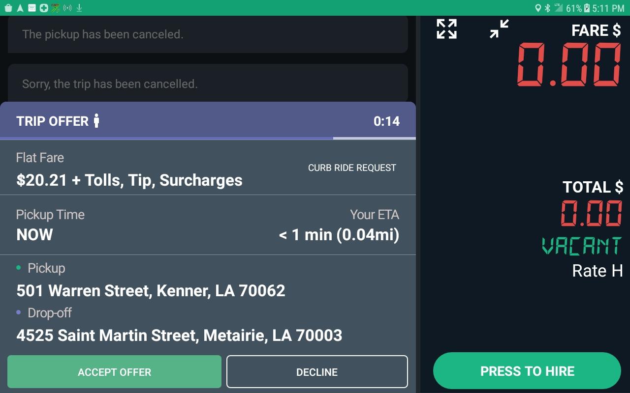 You have only 30 seconds to accept trip or the trip will be offered to the next available taxi.