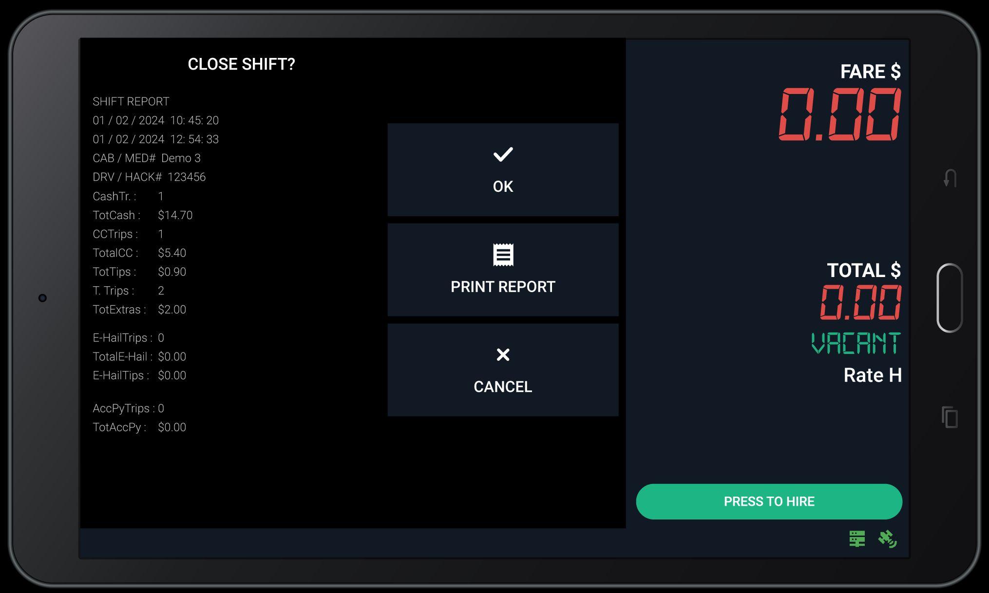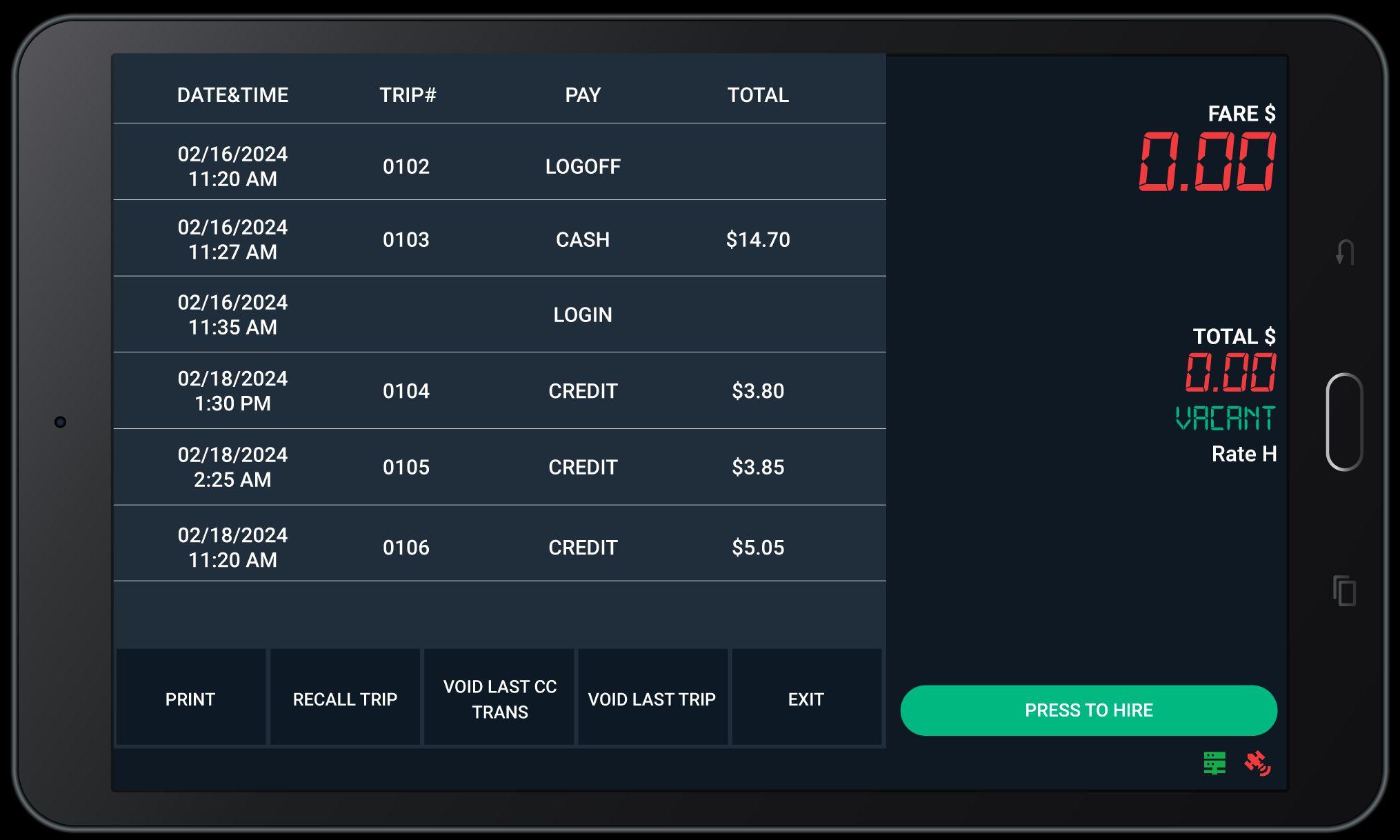You can now scroll and select individual trips to view details and reprint receipt if needed. This is Vacant Mode