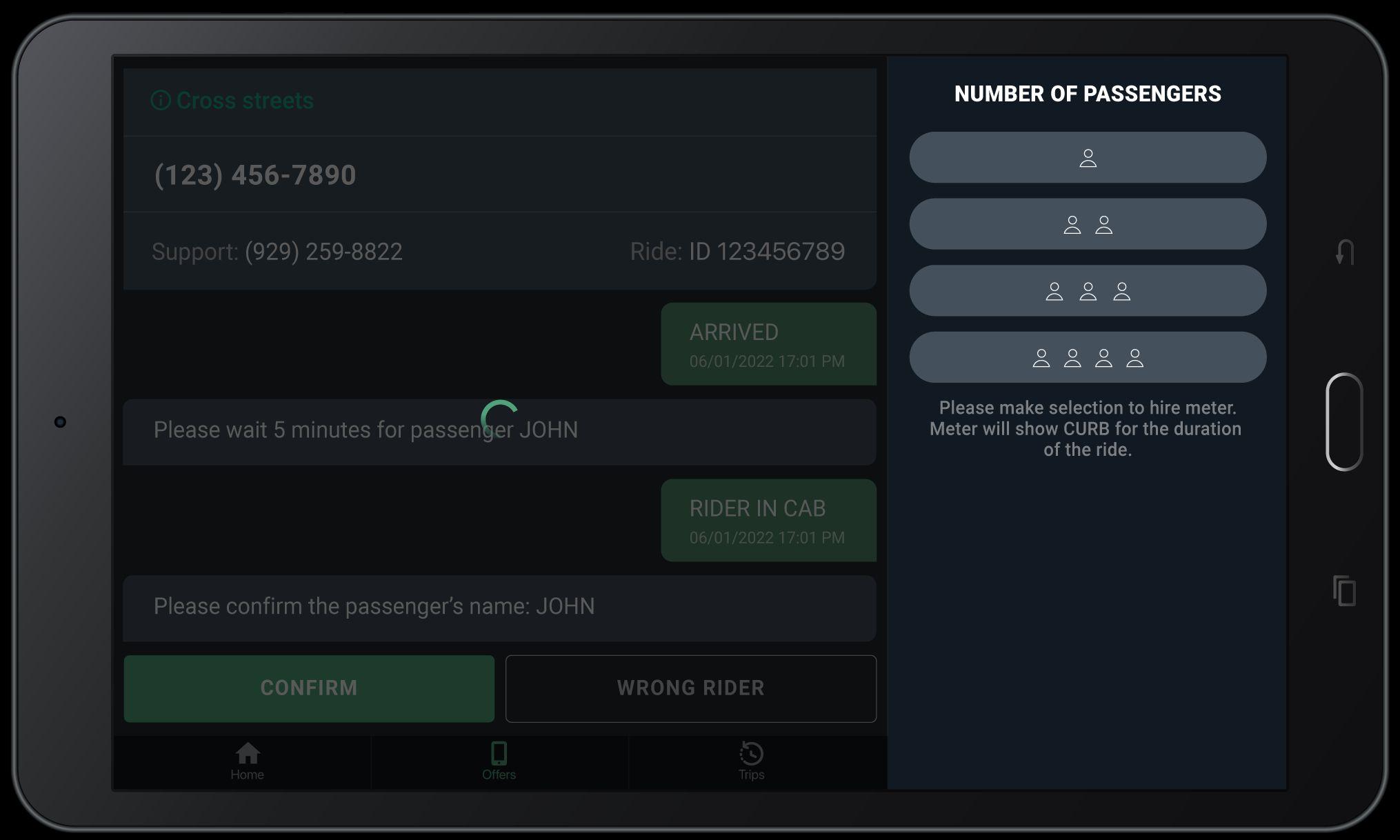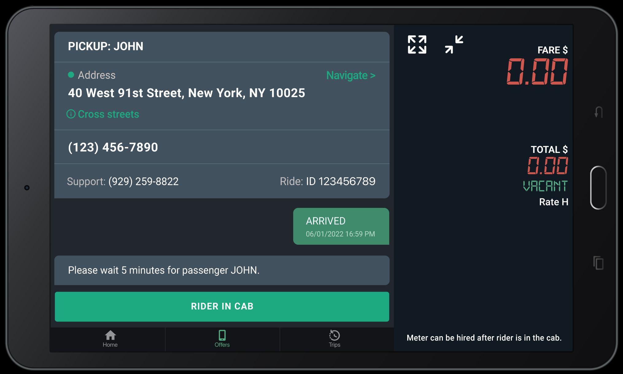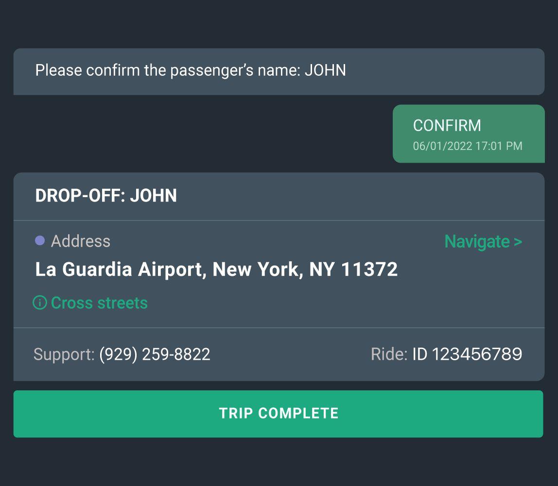 If you win the bid, you will see the pickup screen with the passenger’s name and phone number.