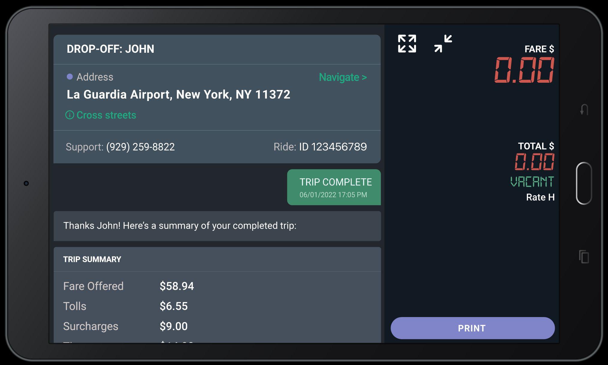 After arriving at drop off address and dropping off passenger, tap Trip Complete.