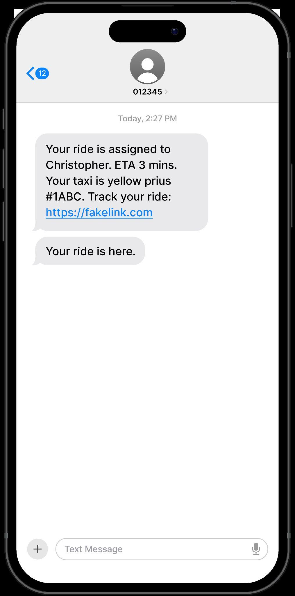 Passenger will be notified by push notification or text message that the taxi is arriving.