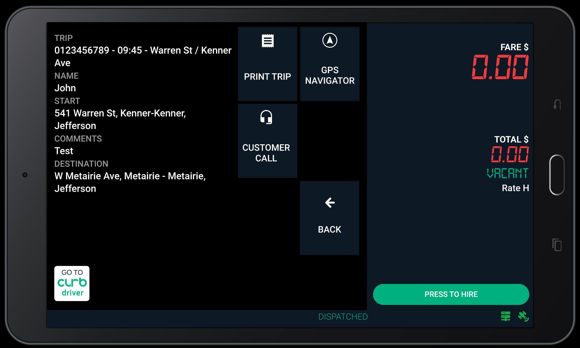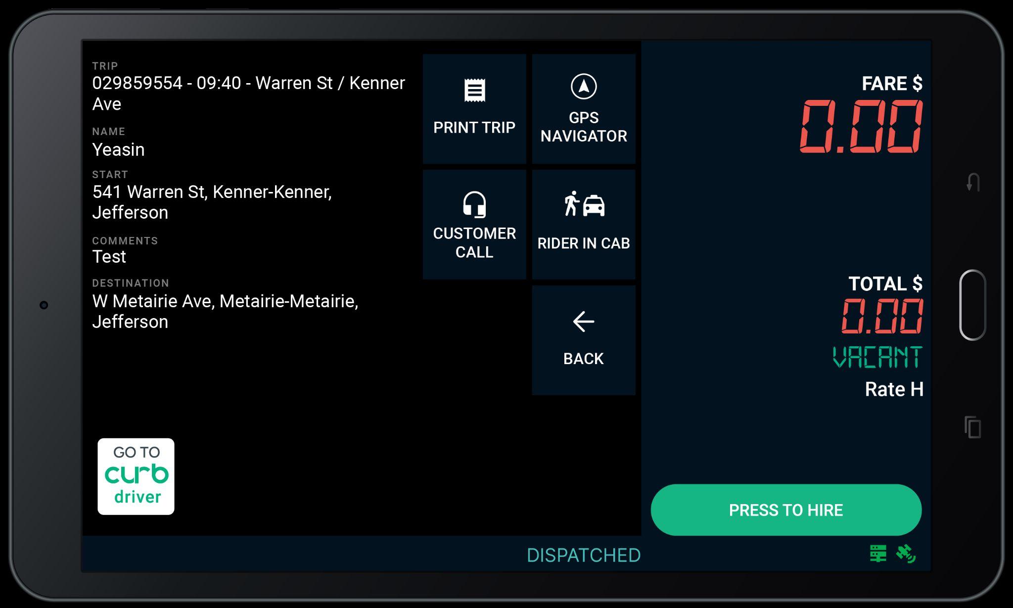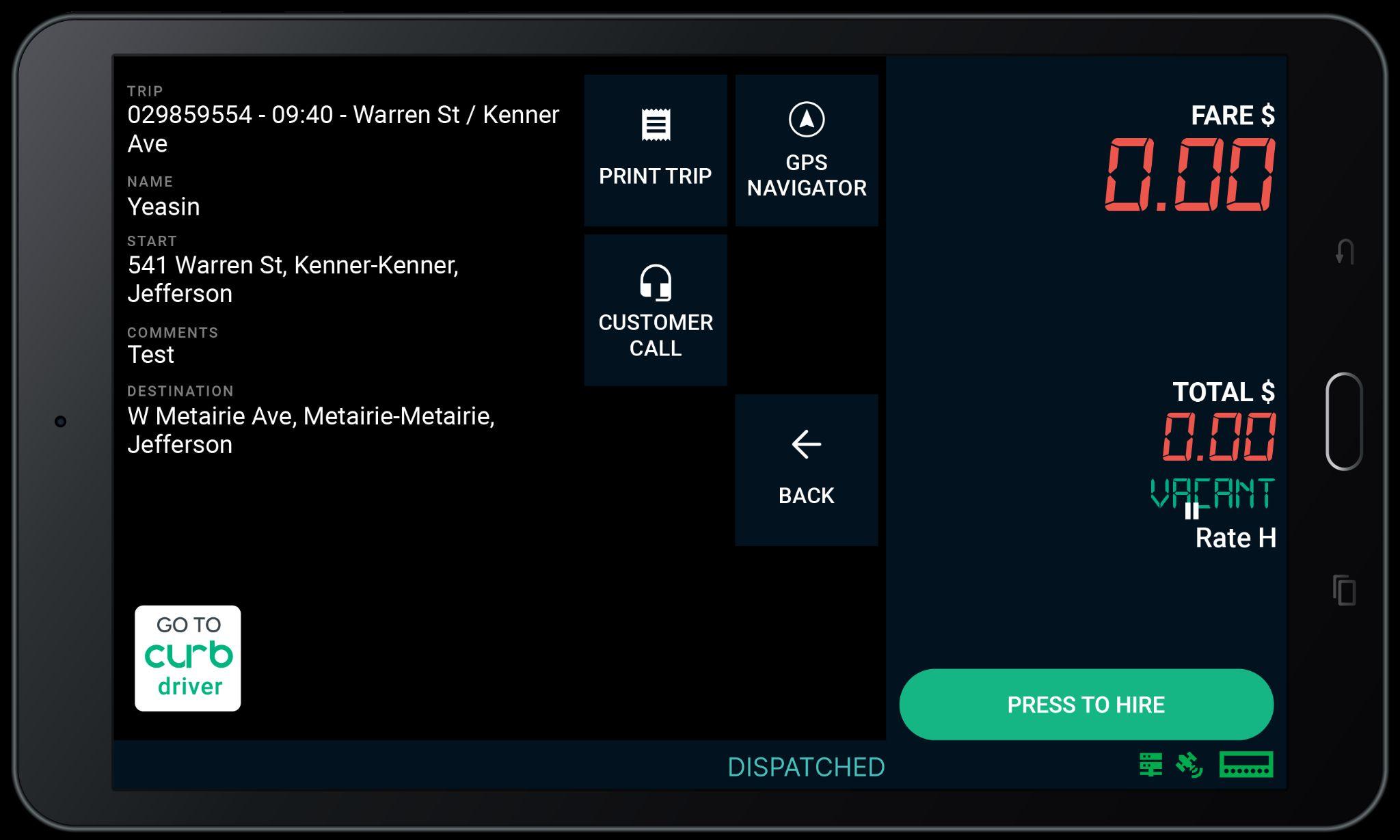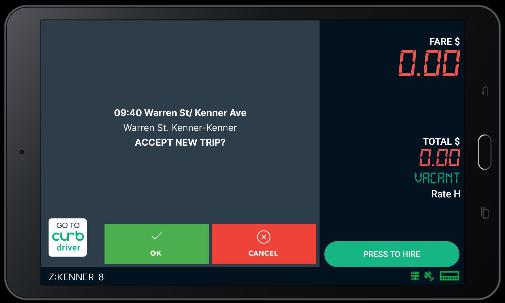 Once you receive a Dispatch request, Select OK to accept Trip. You have only 30 seconds to accept trip or the trip will be offered to the next available taxi.