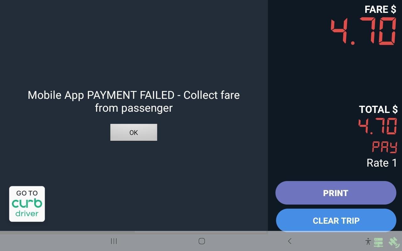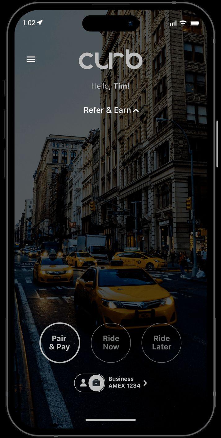 If the passenger wants to pay with the Curb App instead of a physical card, the passenger must use the Pair & Pay feature during the ride and pair the code displayed on the Marquee screen with their Curb App.