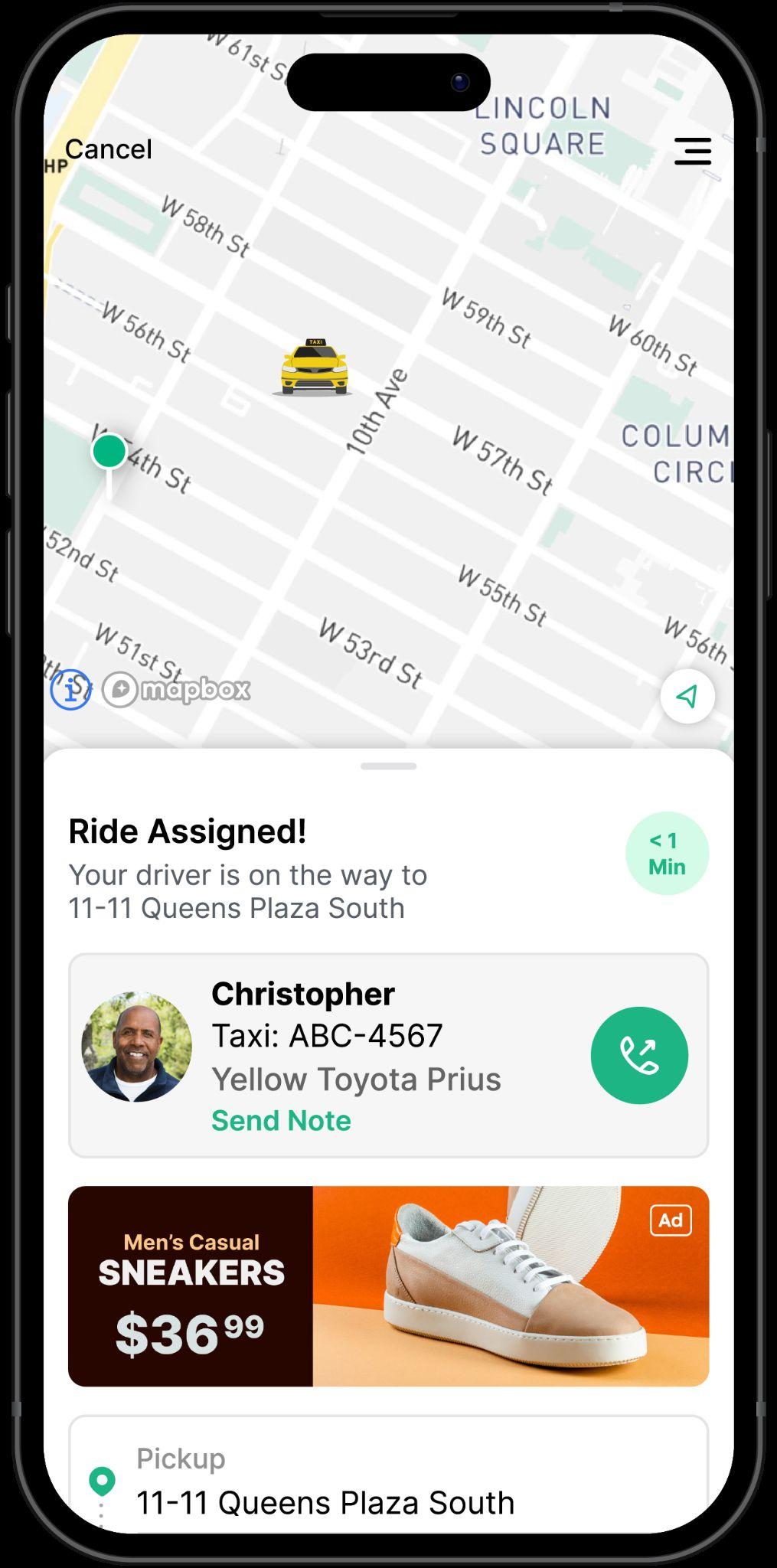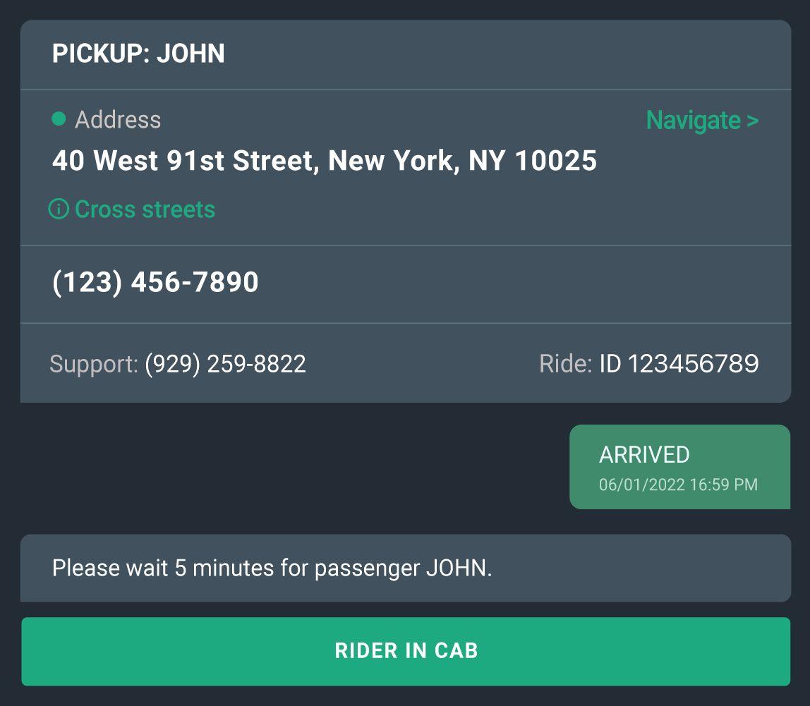 If you win the bid, you will see the pickup screen with the passenger’s name and phone number.