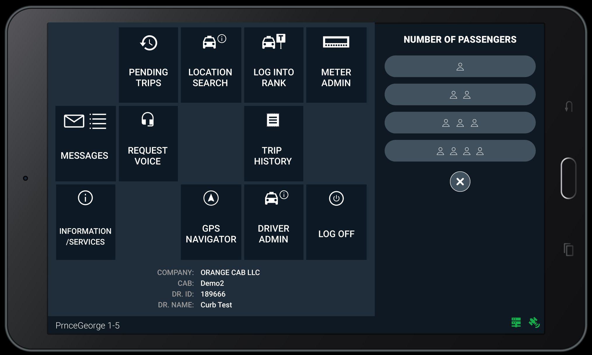 This is your Zone Status indicator, which shows your vehicle’s current position. This is the zone/taxi stand name, and the number after the hyphen (-) is your cab position number.