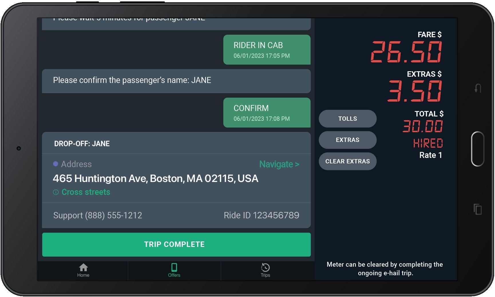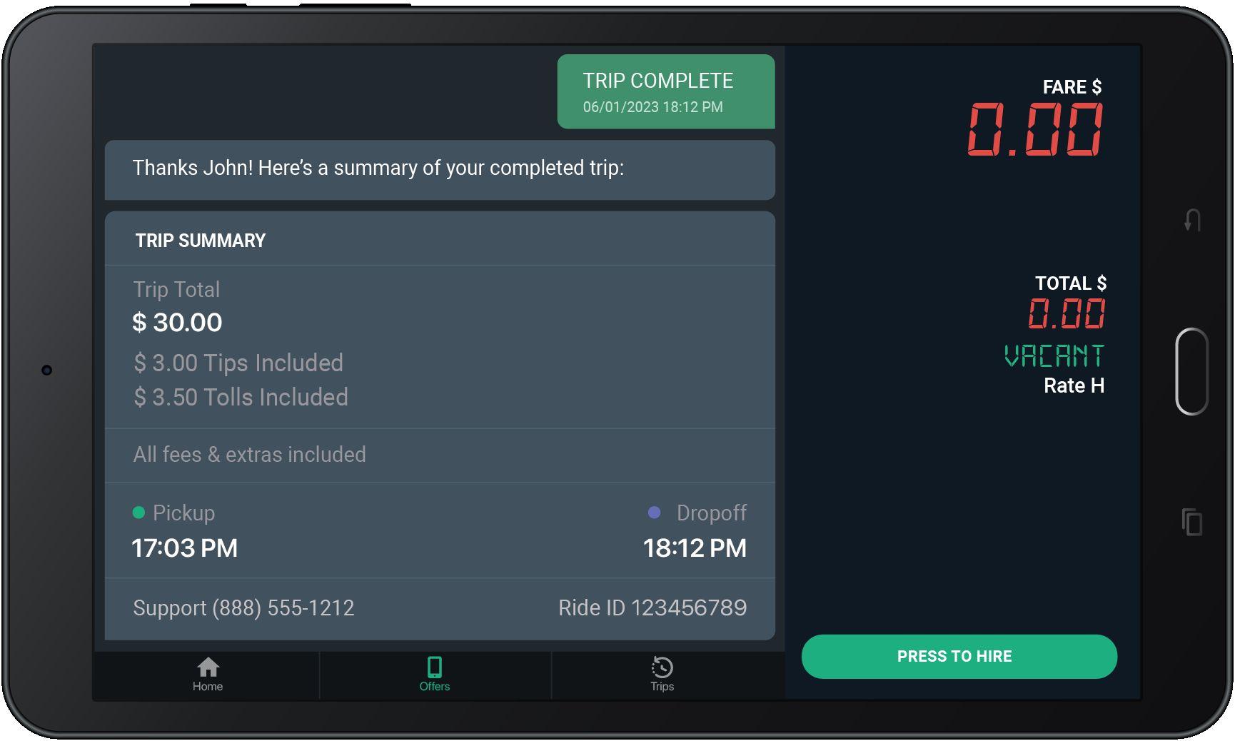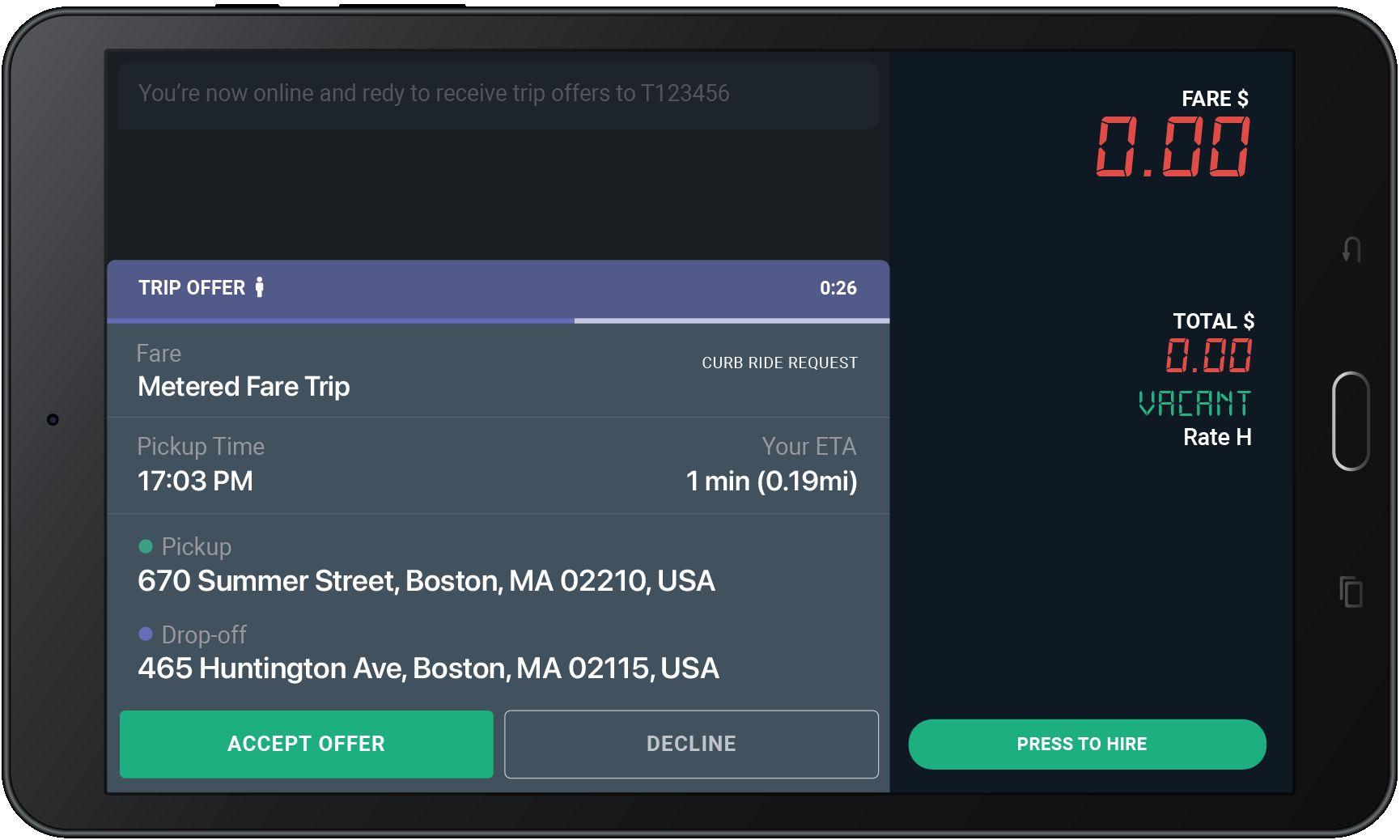 If your meter is vacant, you are able to receive e-hail trip offers while on this screen.