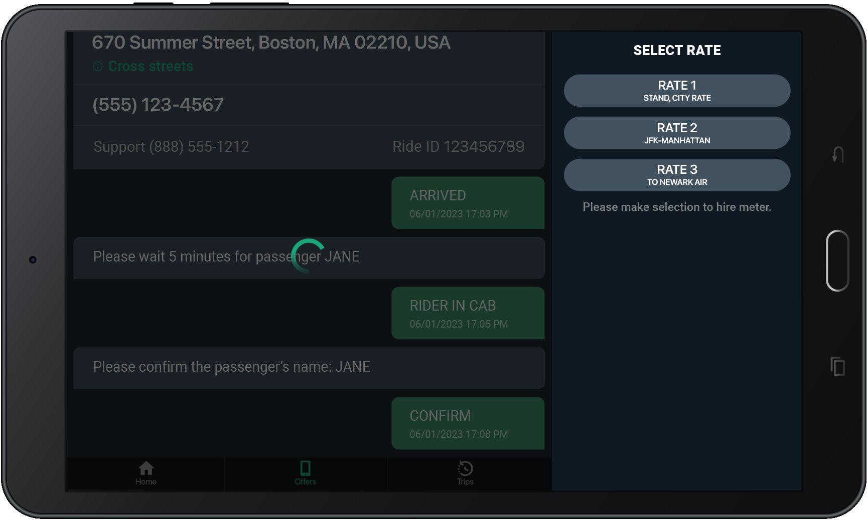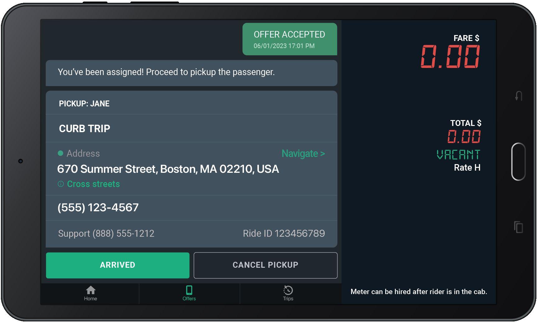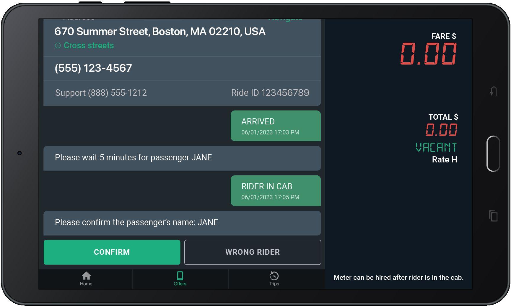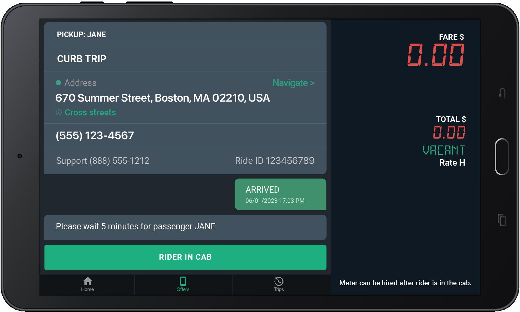 If your meter is vacant, you are able to receive e-hail trip offers while on this screen.
