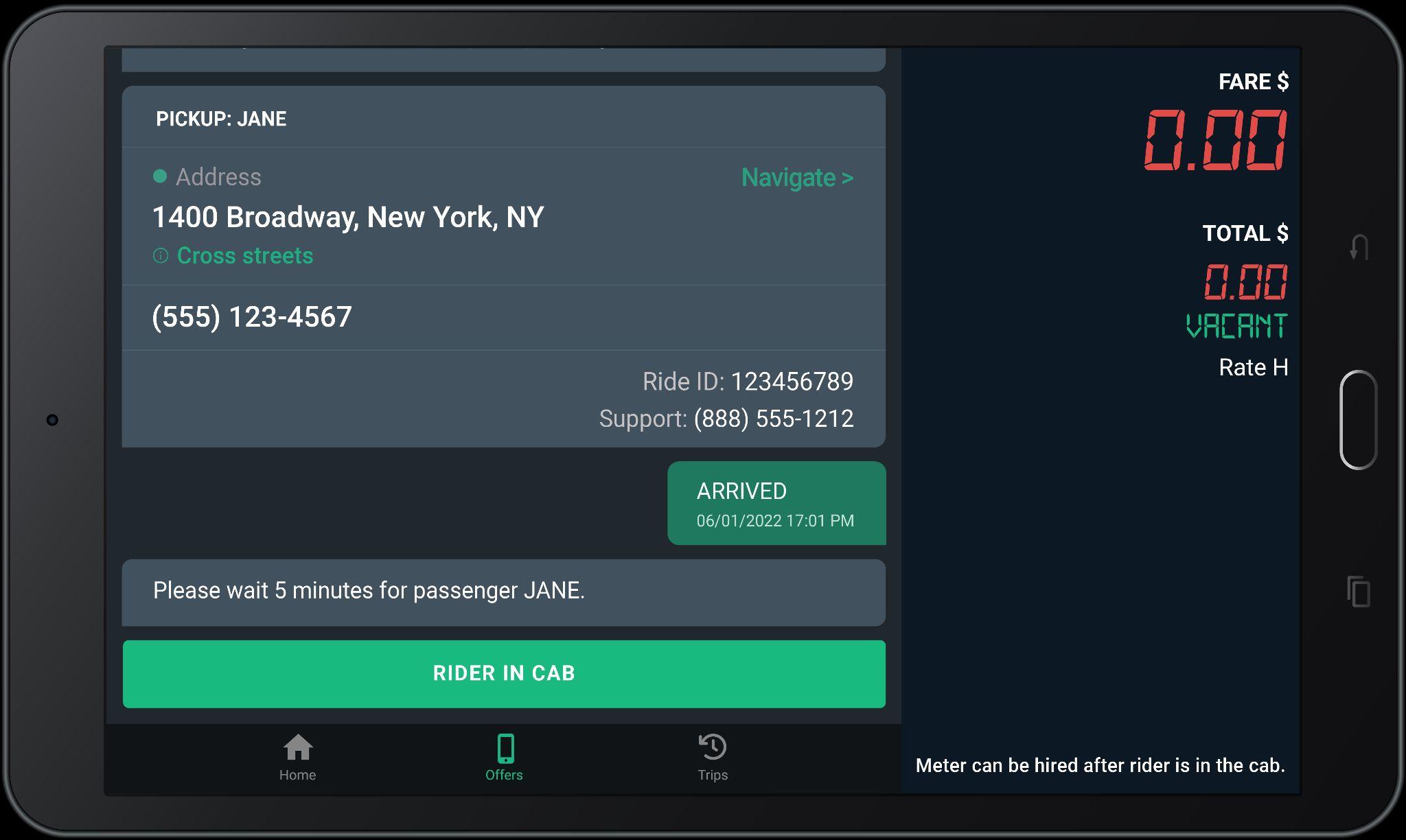If your meter is vacant, you are able to receive e-hail trip offers while on this screen.