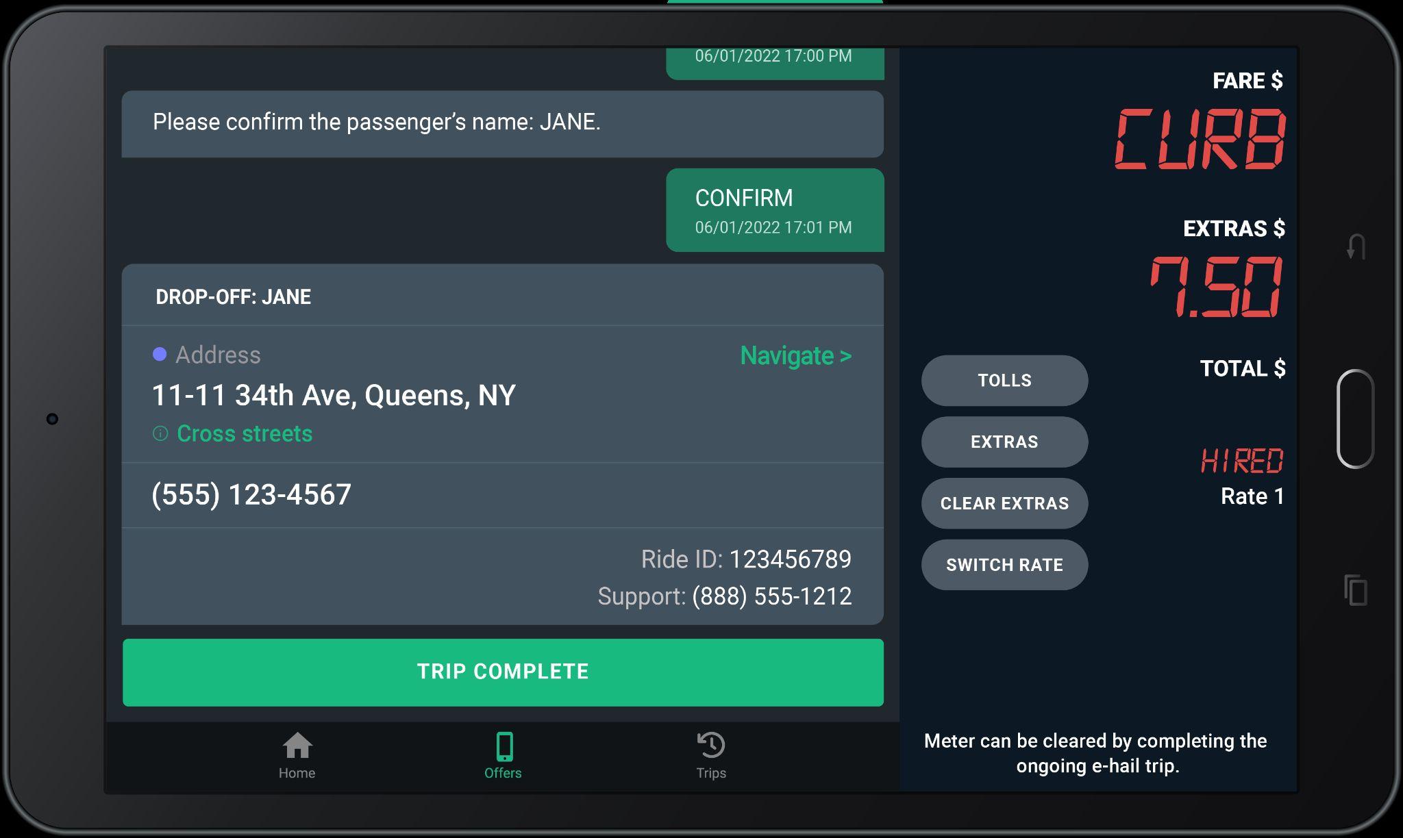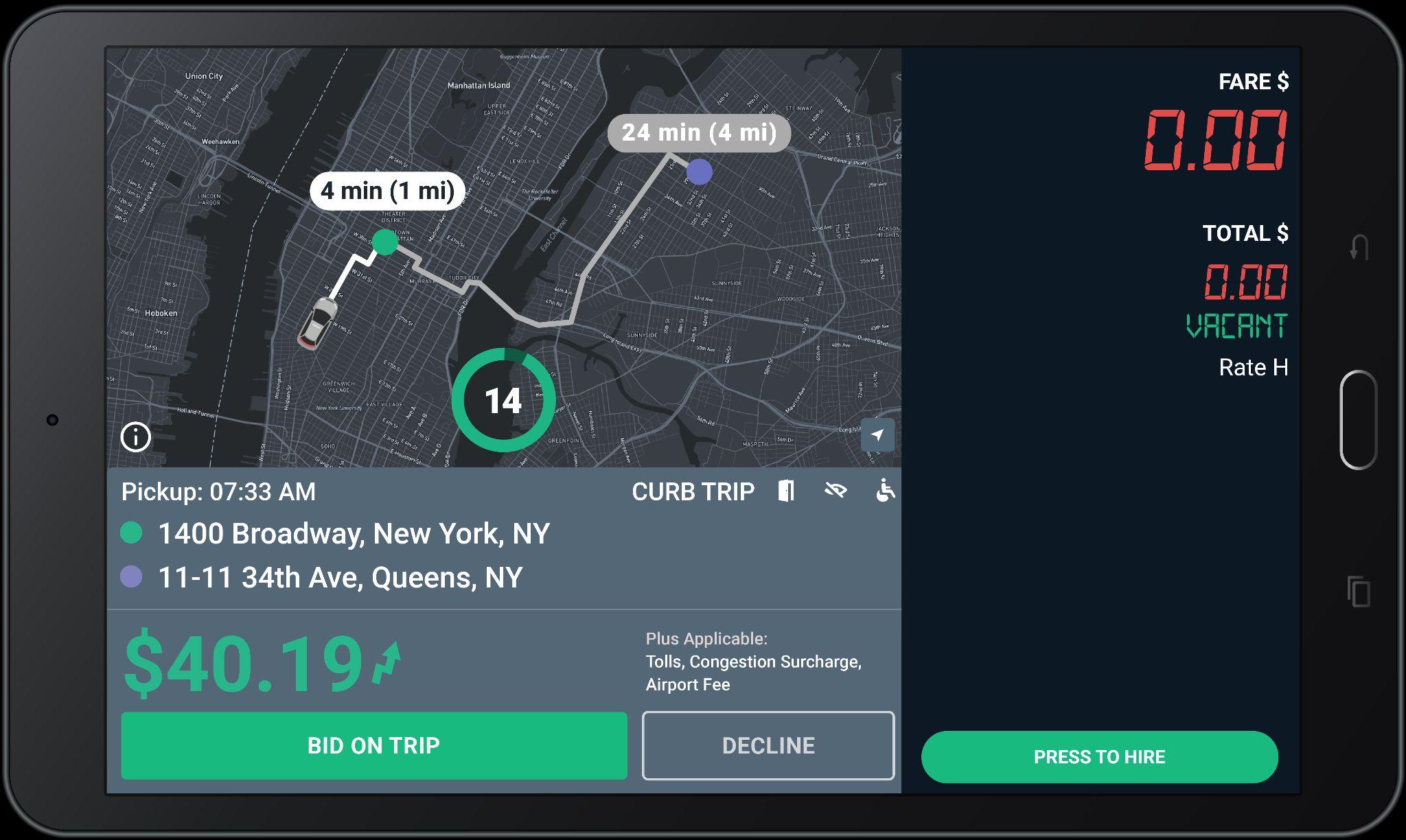 To access the Curb Driver Home Screen for additional e-hail functions, press the white “Go To Curb driver” button.