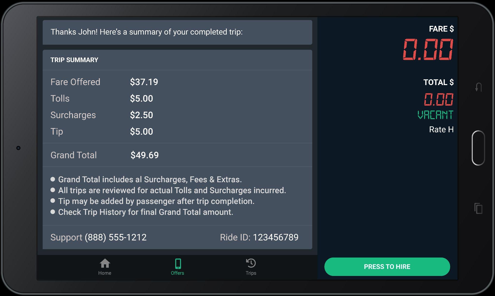 If your meter is vacant, you are able to receive e-hail trip offers while on this screen.