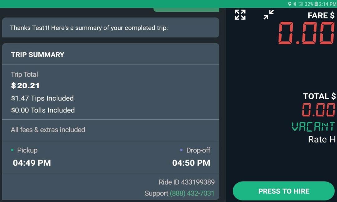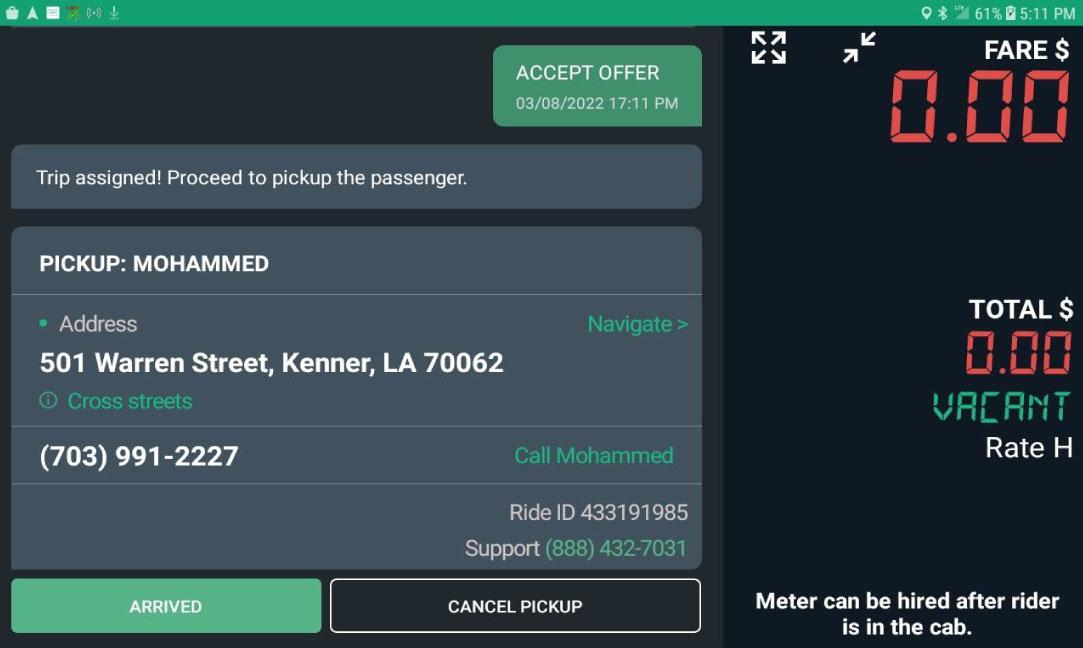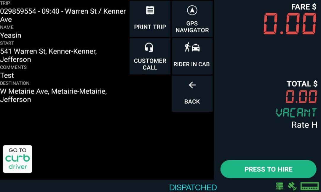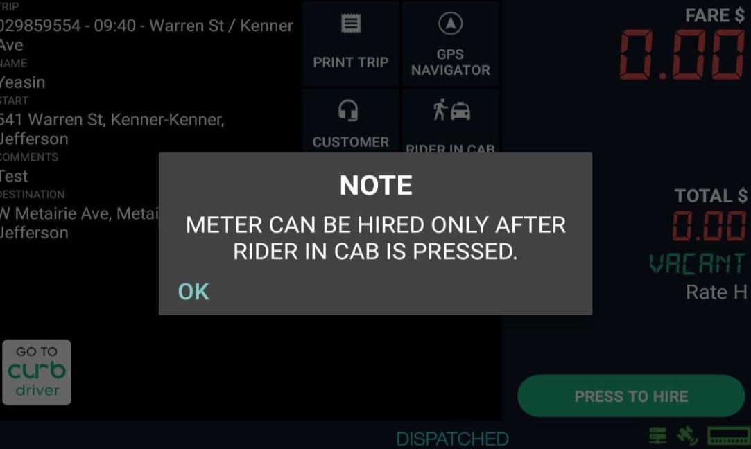 Select “Rider in Cab” button when passenger is in vehicle.