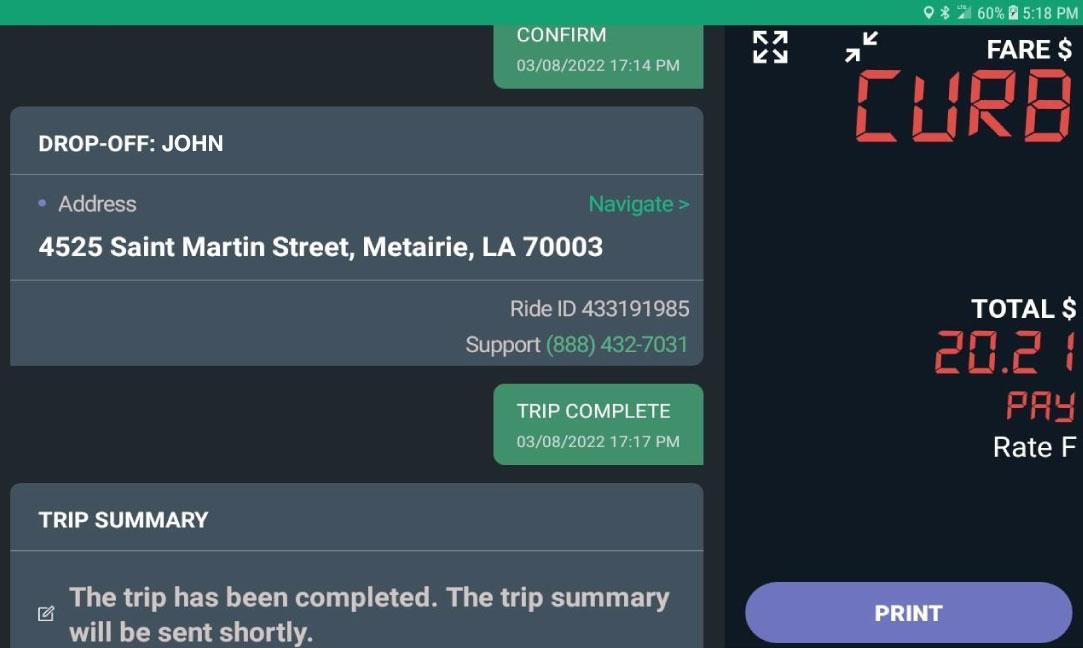 Tap “TRIP COMPLETE” after passenger is dropped off.