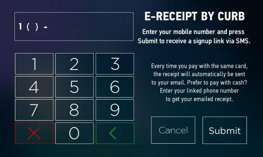 Passenger will receive a text link to download e-Receipt after submitting phone number in the Marquee.