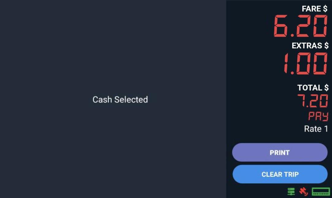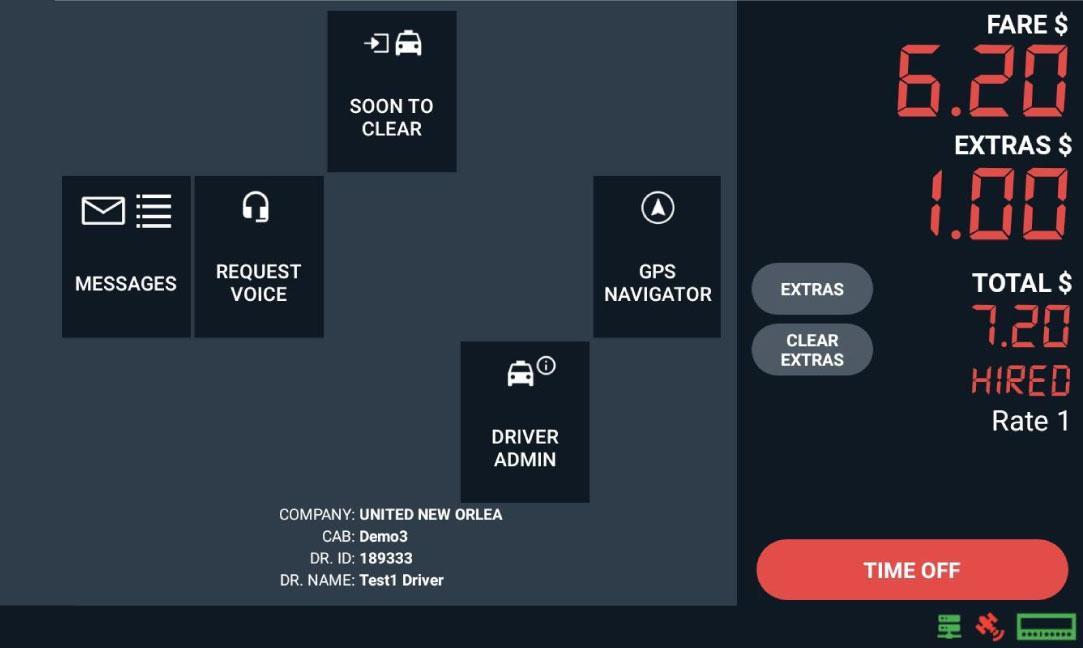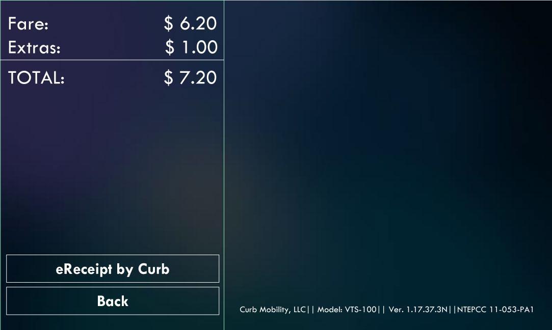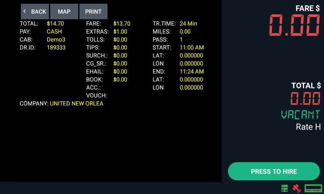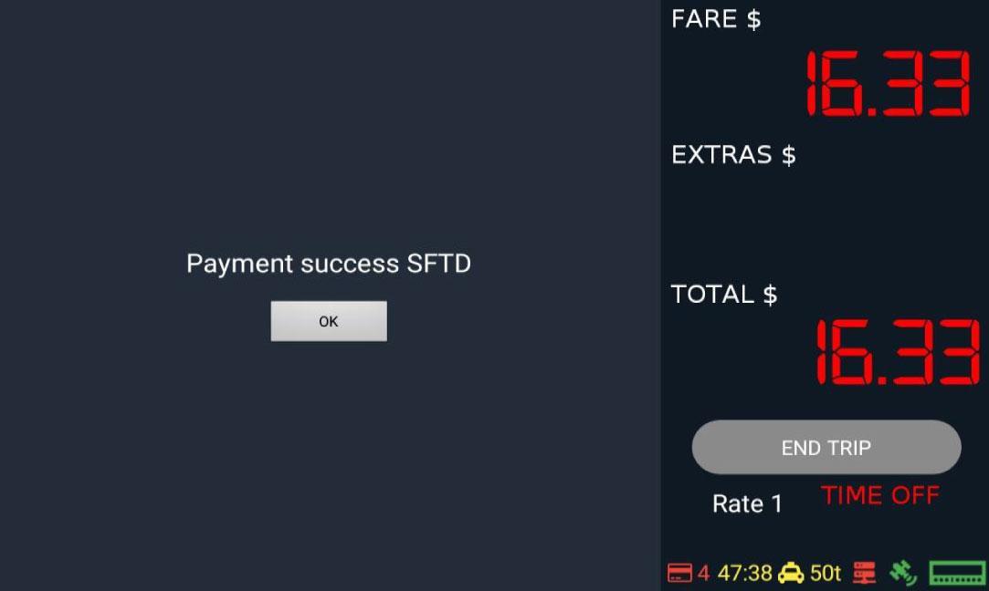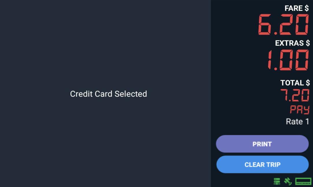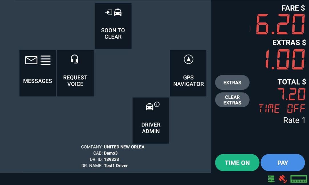 Lastly, after reaching the destination, tap “Time Off” and then tap “PAY” for payment options and to PRINT receipt.