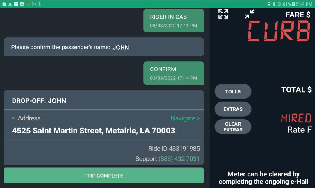 After navigating to destination, tap “TRIP COMPLETE” after passenger is dropped off.
