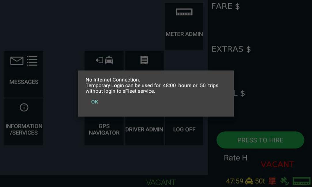Keep in mind that the meter can only be hired once you are at pick up location and selected “Rider in cab” button.