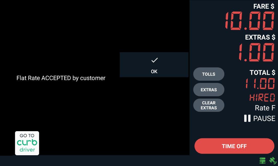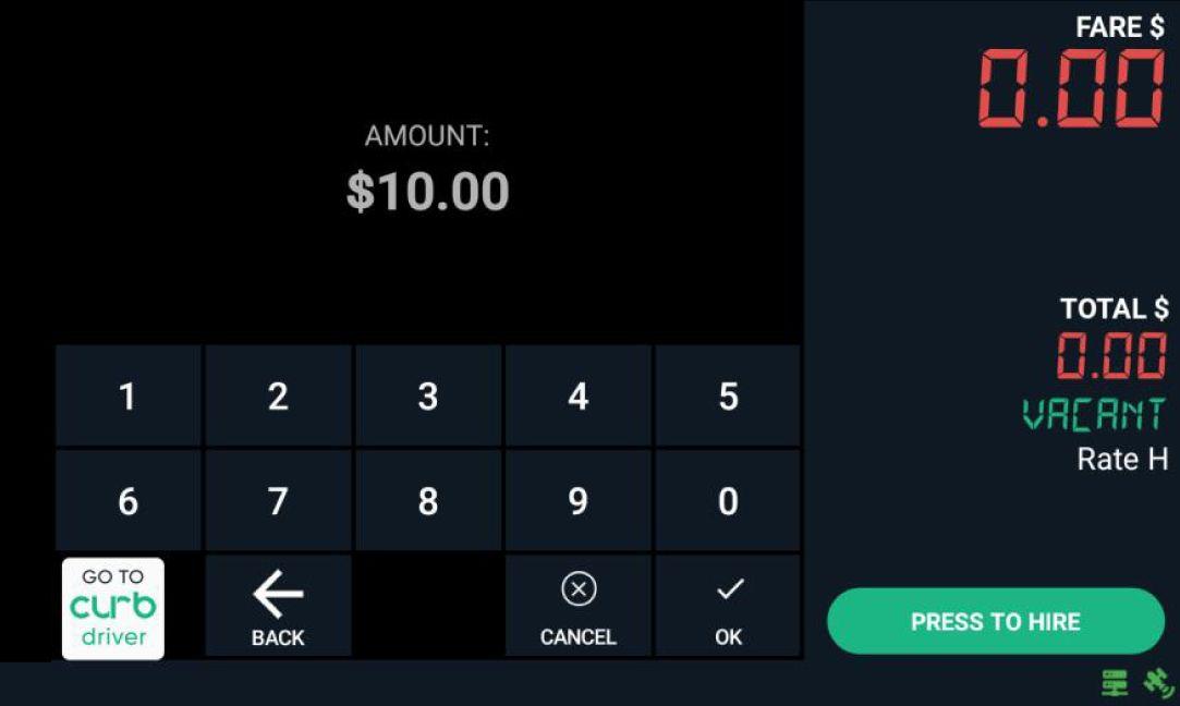 After selecting Rate 8, enter negotiated Amount (Example: $ 10.00) Then Tap “OK” for customer to verify entered fare. 1