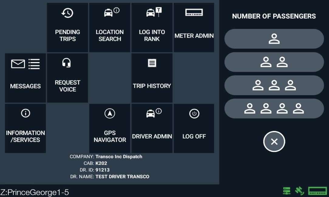 Select the number of Passengers for the trip and hire meter with correct fare rate to process the trip.