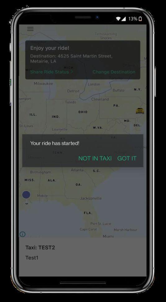 Passenger will select “Got it” in app to confirm being in correct cab.