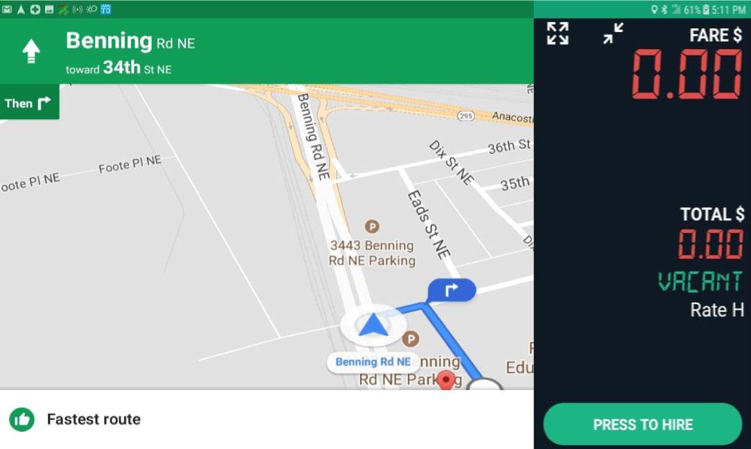 Google Map will automatically direct you to the pickup location. You can return to Meter Menu by tapping on the floating meter.
