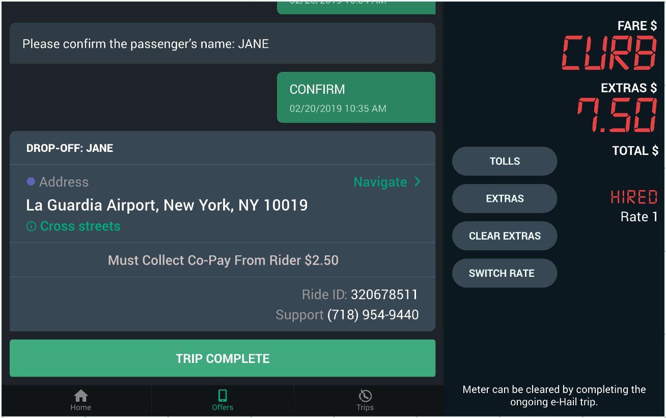 To access the Curb Driver Home Screen for additional e-hail functions, press the white “Go To Curb driver” button.