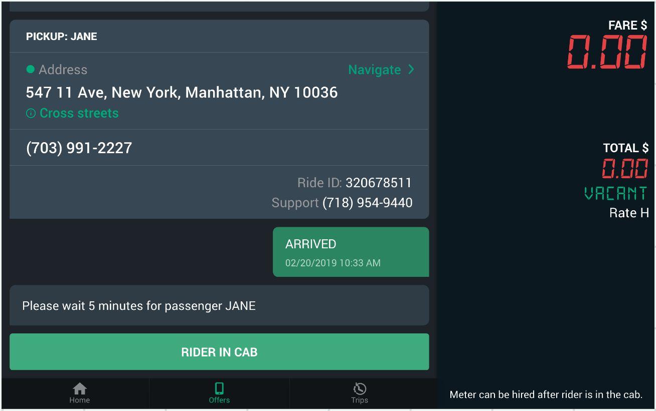 If your meter is vacant, you are able to receive e-hail trip offers while on this screen.