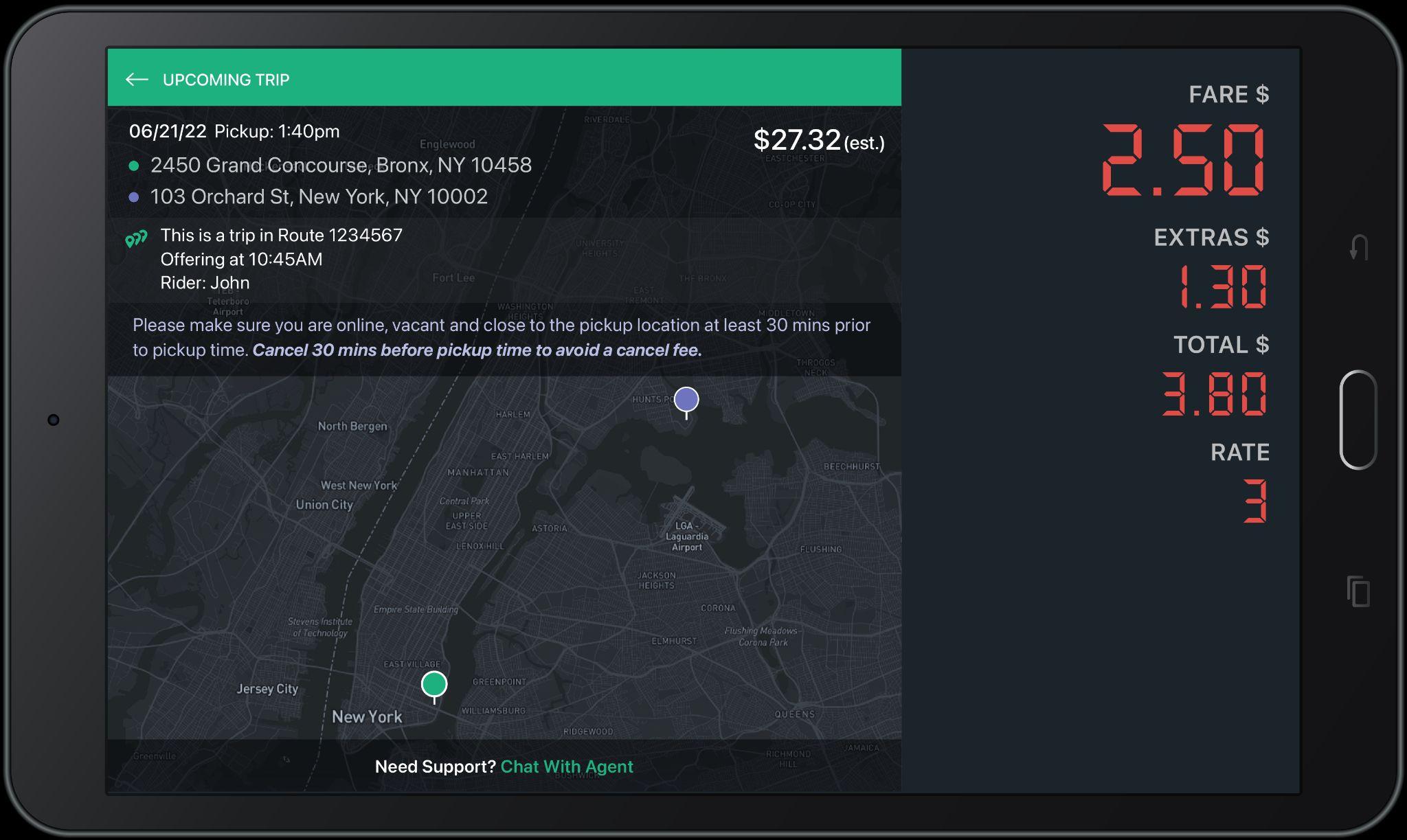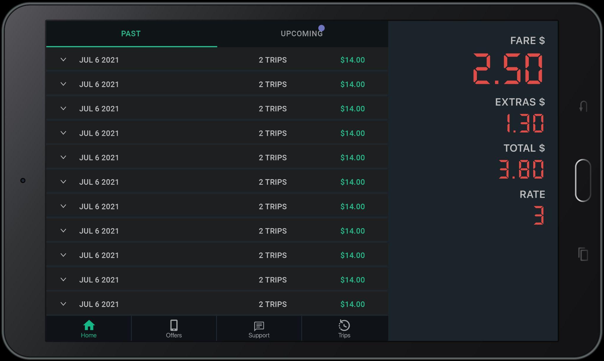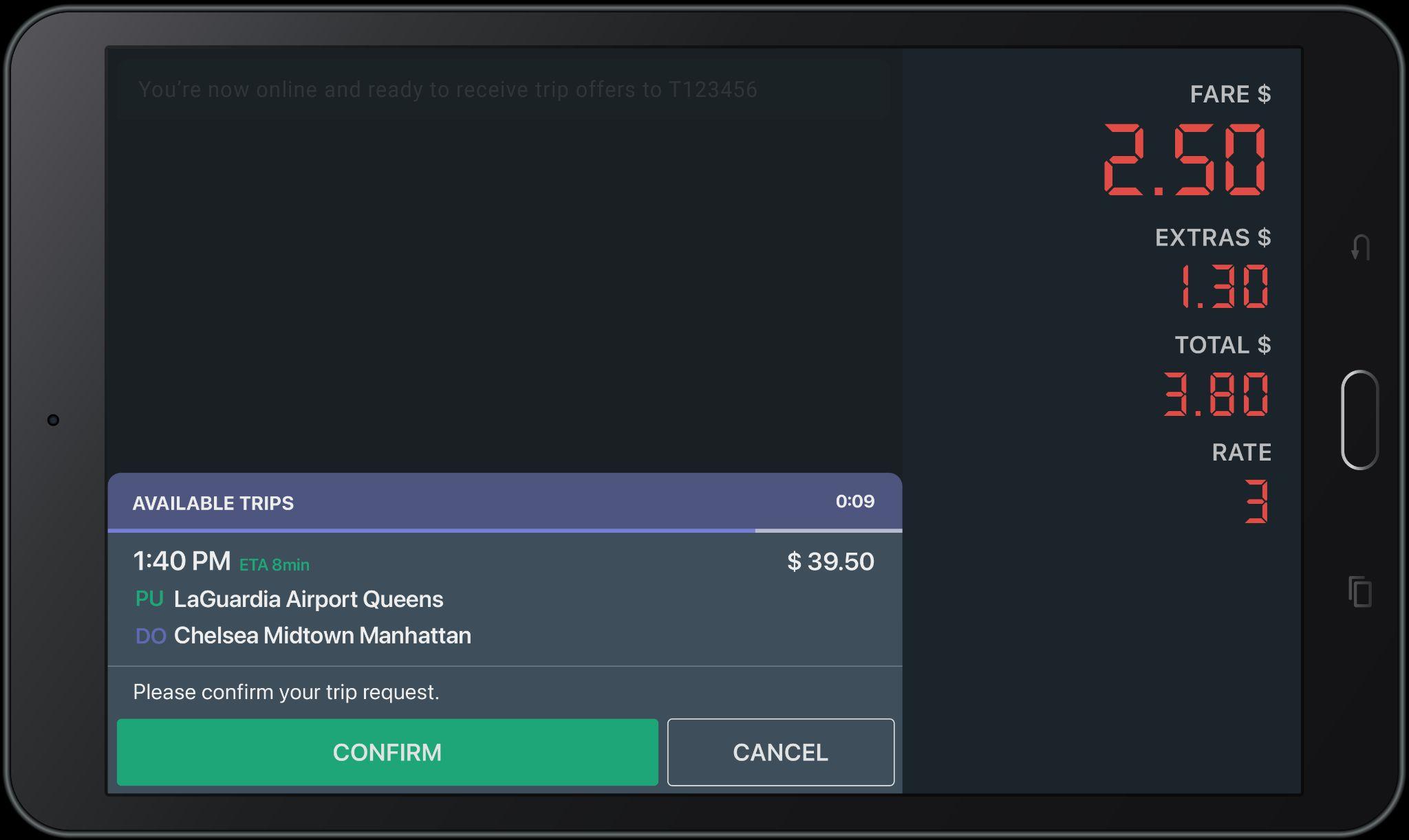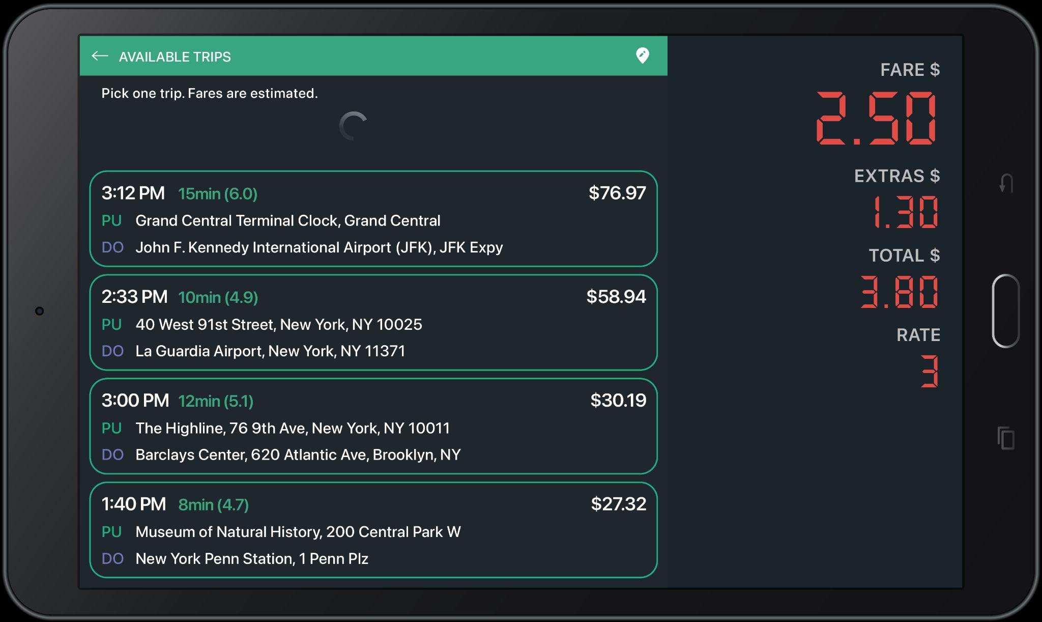 2 You will be able to view a list of available trips near your current location. Each offer contains important information like pickup time, pickup and drop off location.