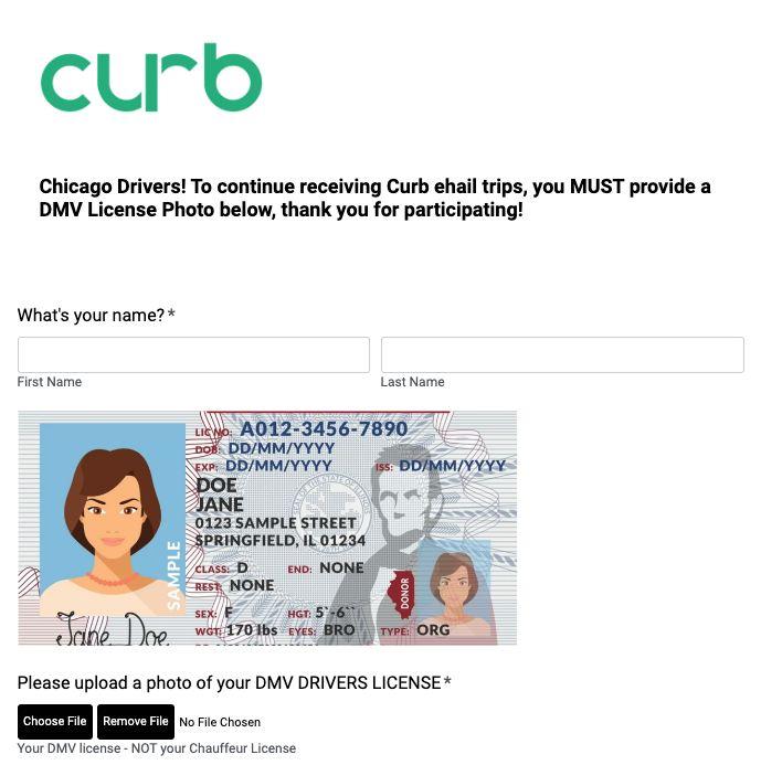 ● Make sure to submit your DMV license photo and SSN to Curb if you have received a SMS from Curb.