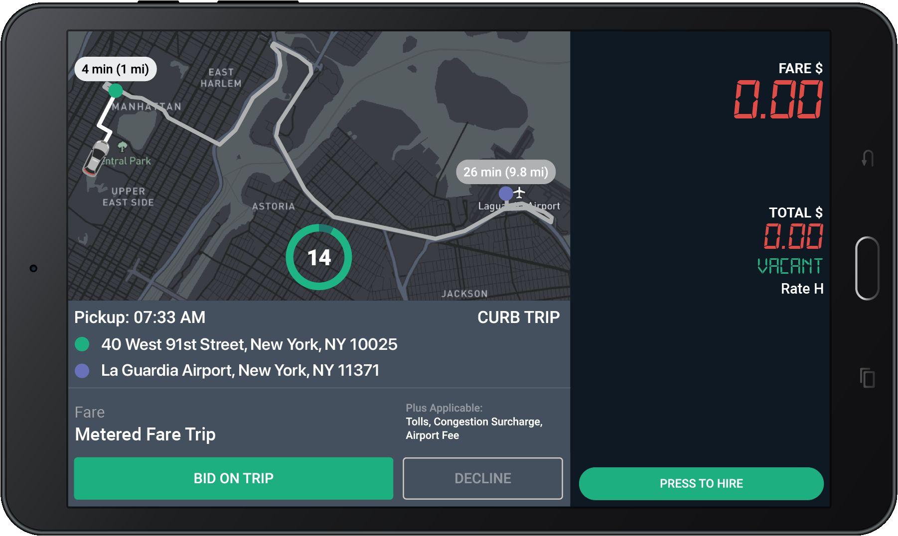For Flat Fare trips, “CURB” will display under fare”