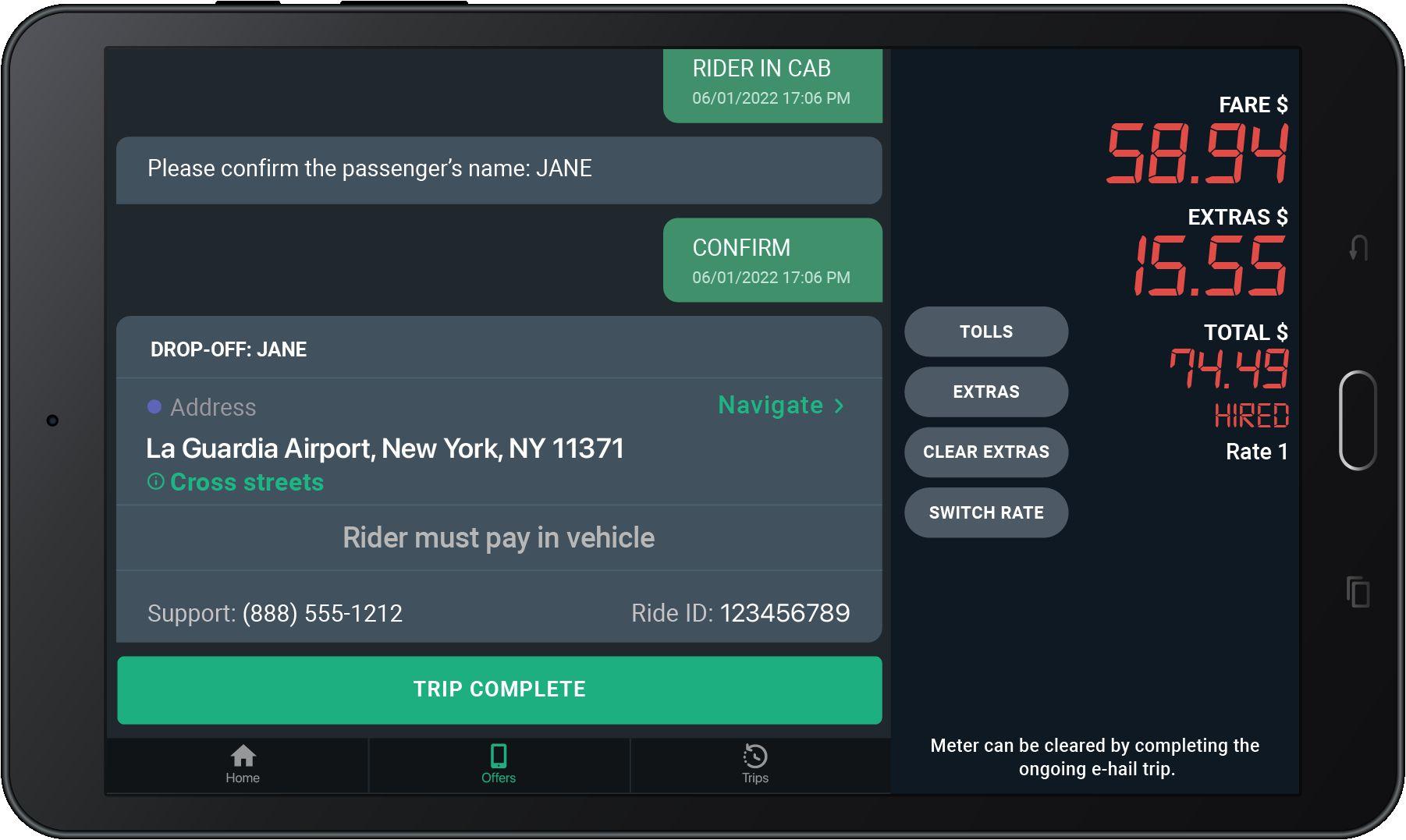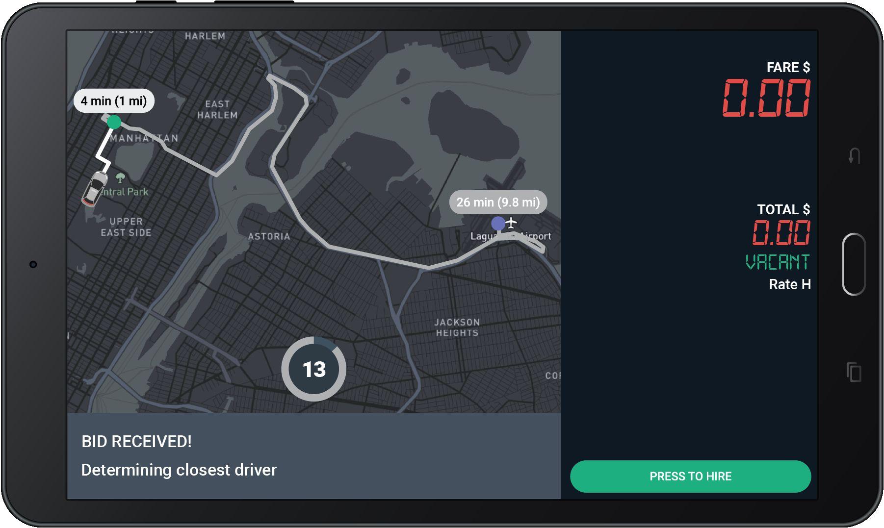 When you get an e-hail, this screen will pop-up in your tablet.