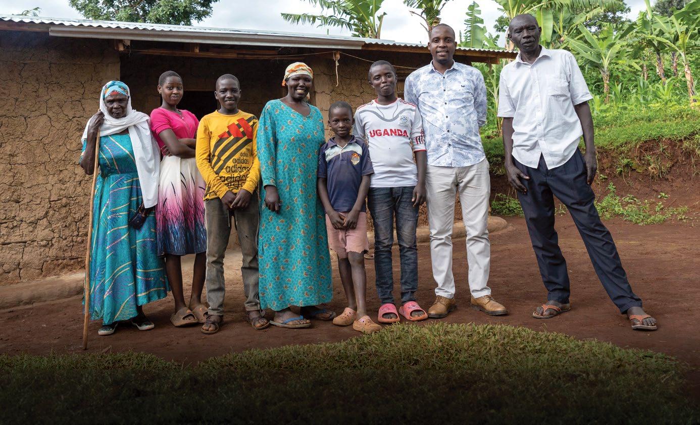 Ashim stands with his mother, Chemtai, and the rest of his family outside their home.