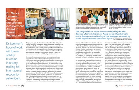 Dr. Vance Lemmon Awarded the Lifetime Achievement Award in Neural Regeneration Dr. Lemmon’s body of work will forever solidify his name in history, making his international recognition self-evident. 16