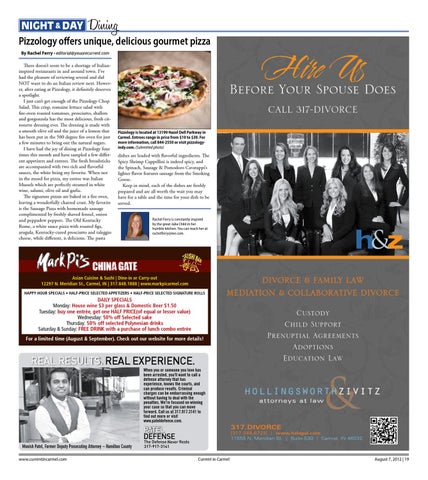 CALL 317-DIVORCE Pizzology is located at 13190 Hazel Dell Parkway in Carmel. Entrees range in price from $10 to $30. For more information, call 844-2550 or visit pizzologyindy.com. (Submitted photo)