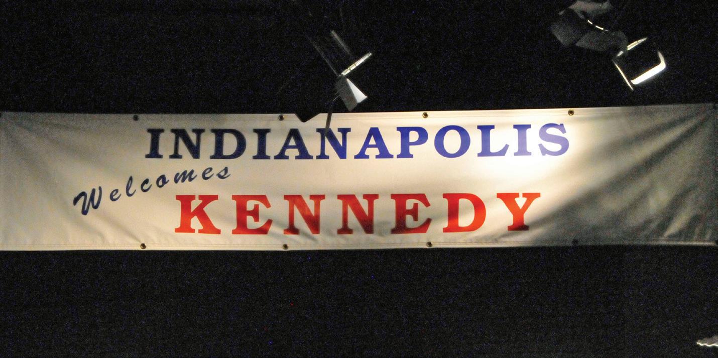 A banner on display welcoming JFK to Indianapolis during his 1960 presidential campaign. (Photo by Don Knebel)