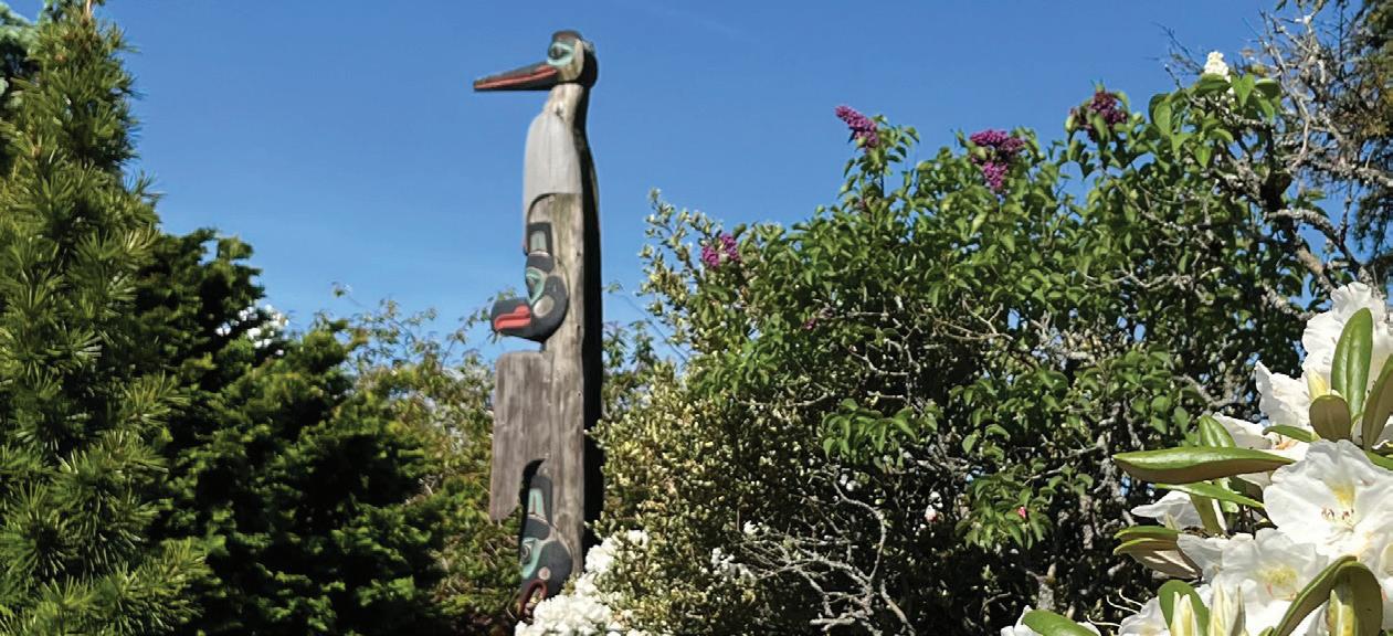 with a population of about 8,000. Each summer, cruise ships make about 500 stops in Ketchikan’s harbor, bringing in about 1 million visitors. Ketchikan bills itself as “Alaska’s First City” and the “Salmon Capital of the World.” Because of its rainfall, Ketchikan is also sometimes called the “Rain Capital of Alaska.” Ketchikan and the surrounding area include the largest collection of standing totem poles in the world. Until recently, the Chief Kyan pole in Whale Park near the center of town was featured on Page 25 of U.S. passports. The historic buildings along Creek Street have