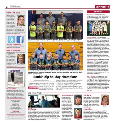 Have a news tip? Want to submit a calendar event? Have a photograph to share? Call Robert Herrington at 489.4444 ext. 206 or e-mail him at robert@youarecurrent. com. You may also submit information on our website, currentinwestfield. com. You can find the Contact Us form under About Us in the upper-left corner. Remember our news deadline is typically eight days prior to publication.