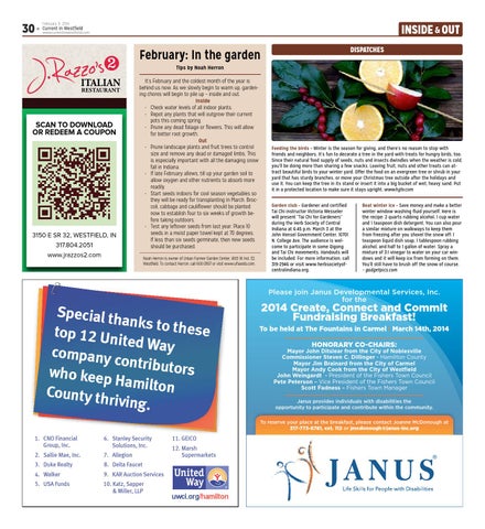 It’s February and the coldest month of the year is behind us now. As we slowly begin to warm up, gardening chores will begin to pile up – inside and out. Inside • Check water levels of all indoor plants. • Repot any plants that will outgrow their current pots this coming spring. • Prune any dead foliage or flowers. This will allow for better root growth. Out • Prune landscape plants and fruit trees to control size and remove any dead or damaged limbs. This is especially important with all the damaging snow fall in Indiana. • If late February allows, till up your garden soil to allow oxygen and other nutrients to absorb more readily. • Start seeds indoors for cool season vegetables so they will be ready for transplanting in March. Broccoli, cabbage and cauliflower should be planted now to establish four to six weeks of growth before taking outdoors. • Test any leftover seeds from last year. Place 10 seeds in a moist paper towel kept at 70 degrees. If less than six seeds germinate, then new seeds should be purchased. Noah Herron is owner of Urban Farmer Garden Center, 4105 W. Ind. 32, Westfield. To contact Herron, call 600-2807 or visit www.ufseeds.com.