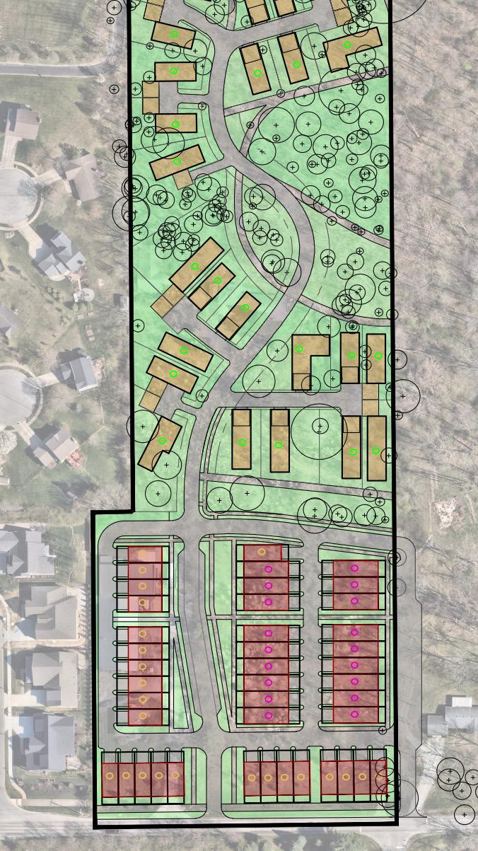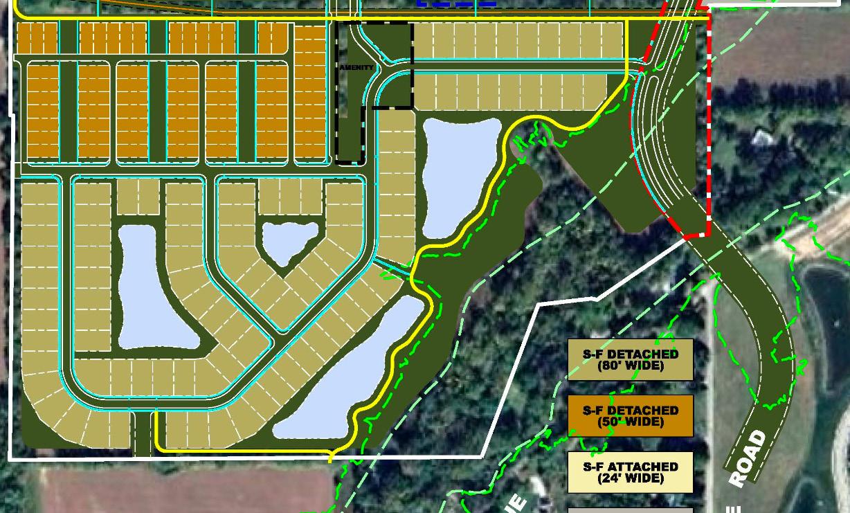 The proposed development would include retail businesses along Ind. 32 as well as 172 single-family homes in two zones south of the retail district and an additional 26 townhomes directly south of the commercial district.
