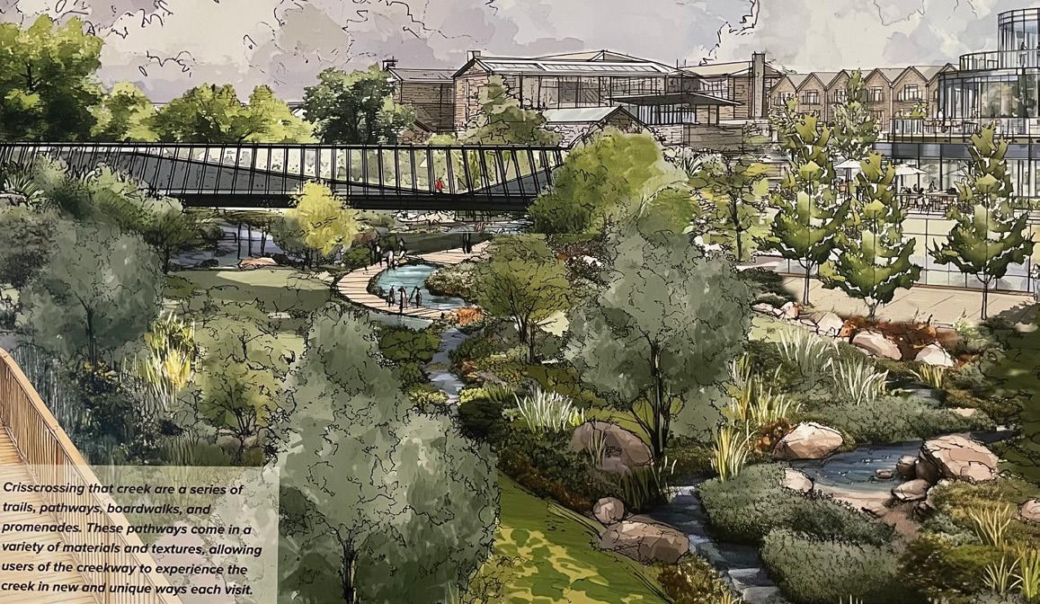 The bridge over the Grassy Branch greenspace is a centerpiece for that part of that part of the Downtown Redevelopment Plan presentation Nov. 19. (Photos by Todd Golden)