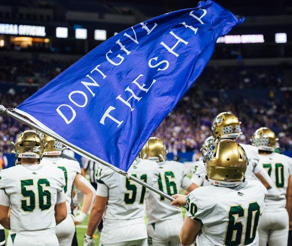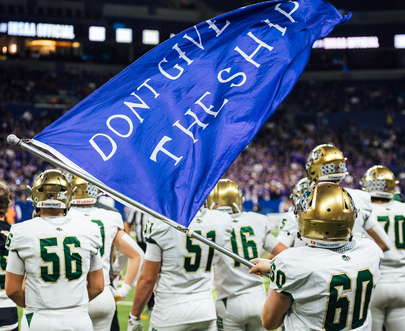 Throughout the IHSAA Class 6A state championship game Nov. 29 at Lucas Oil Stadium, Westfield High School junior offensive lineman Jack Feltz flew a flag on his team’s sideline that read, “Don’t Give Up The Ship.”