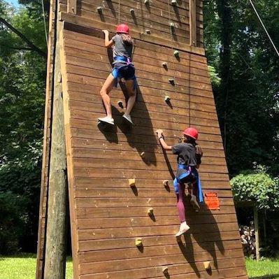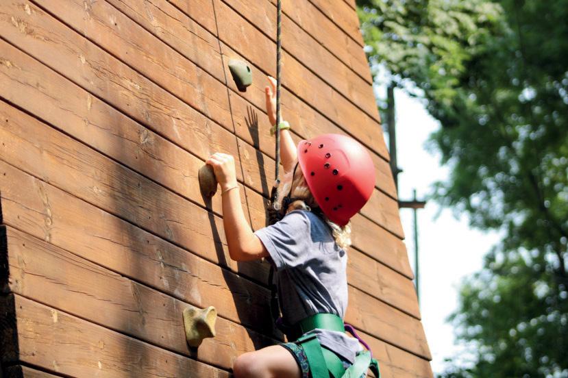 (Above) Campers climb the rock wall during a past summer session at Jameson Camp in Indianapolis. (Photo provided by Jameson Camp) (Left) Campers create arts and crafts projects during a past session of Camp Delafield at Colonial Hills School in Indianapolis. (Photo provided by the Dyslexia Institute of Indiana)