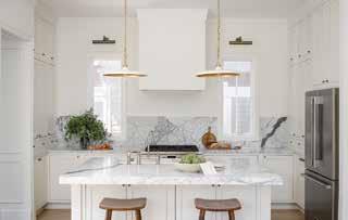 Discover an exquisite 4,700-square-foot Transitional Contemporary home, crafted by Scott Campbell Custom Homes for the 2025 Lee Supply Corp Home-A-Rama. This single-level, empty-nester residence, designed by Saavy Décor’s Linda Mordoh, embodies the concept of “aging in place,” seamlessly blending youthful vibrancy with lifelong functionality. The heart of the home is its expansive open-concept space, uniting the kitchen, dining, and great room under soaring peaked ceilings. Floor-toceiling windows frame stunning golf course views, while a smart pergola extends outdoor living year-round. Downstairs, a luxurious man cave awaits, complete with a golf simulator, a multi-TV wall for game days, a bar, a wine area, and two bedrooms.