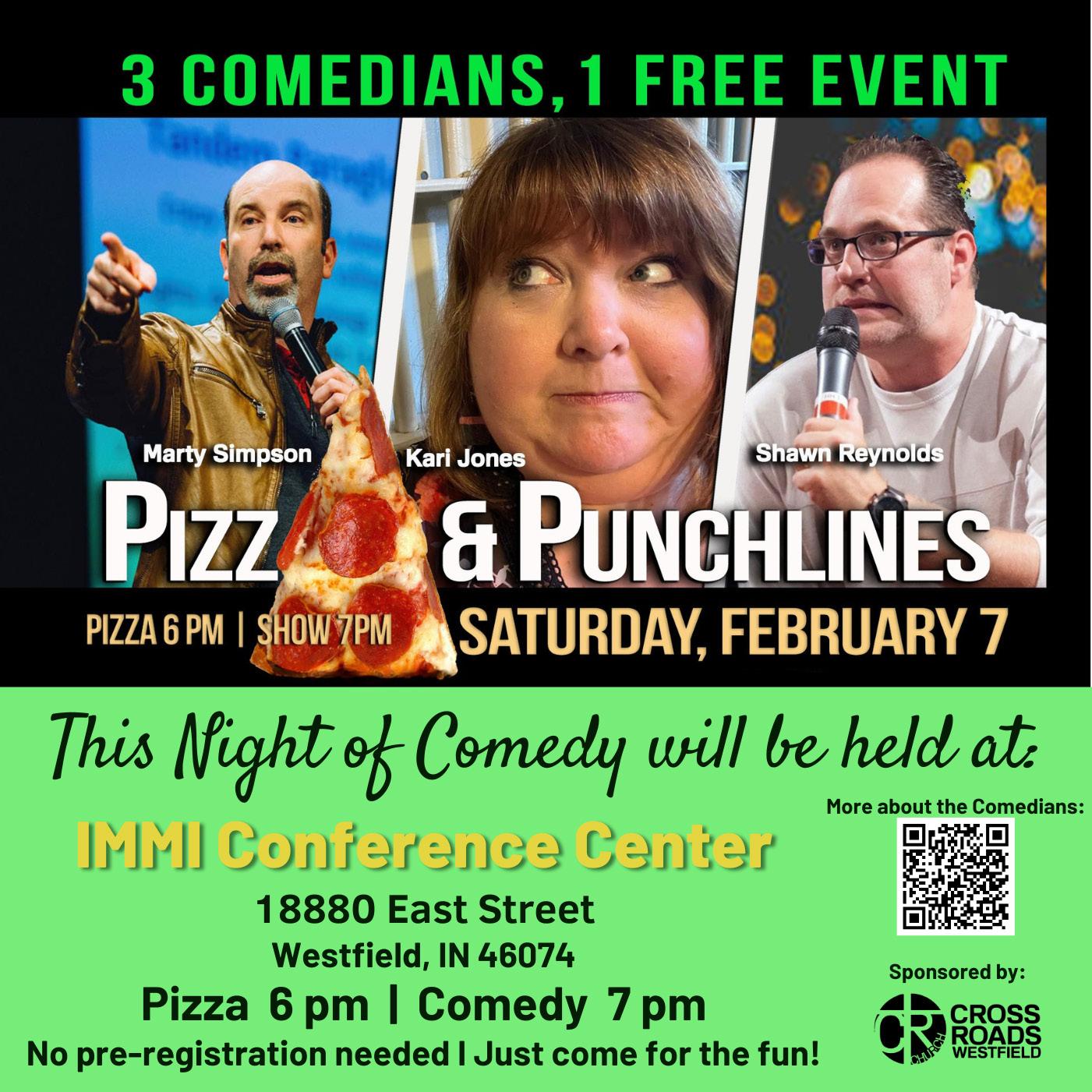 This year’s comedians are Shawn Reynolds, Marty Simpson and Kari Jones. The show is at 7 p.m. Pizza will be provided by the Pizza Kin in westfield CrossRoads Church Lead Pastor Rev. Eric Lohe said that Pizza and Punchlines has become one of the church’s most popular events.