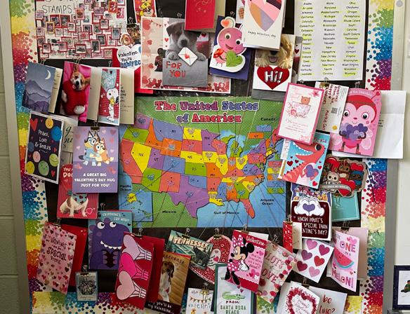 Beth Wright’s class reached an ambitious goal: Receiving valentines from all 50 states. The class also collected cards from nine nations, including Dubai, New Zealand, England, Scotland and Sri Lanka.